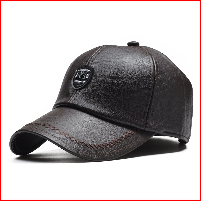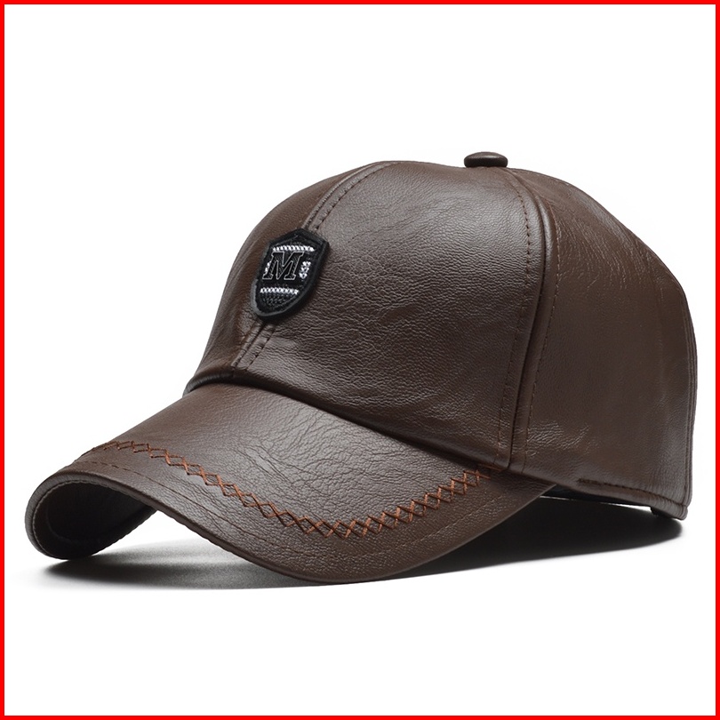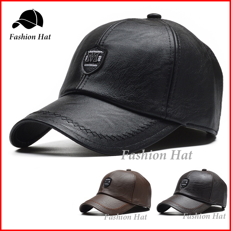 Topi Baseball Mhat Casual Sport Pria Wanita Topi Kulit Leather Pu Topi Pria Dewasa Topi Sabo One Piece