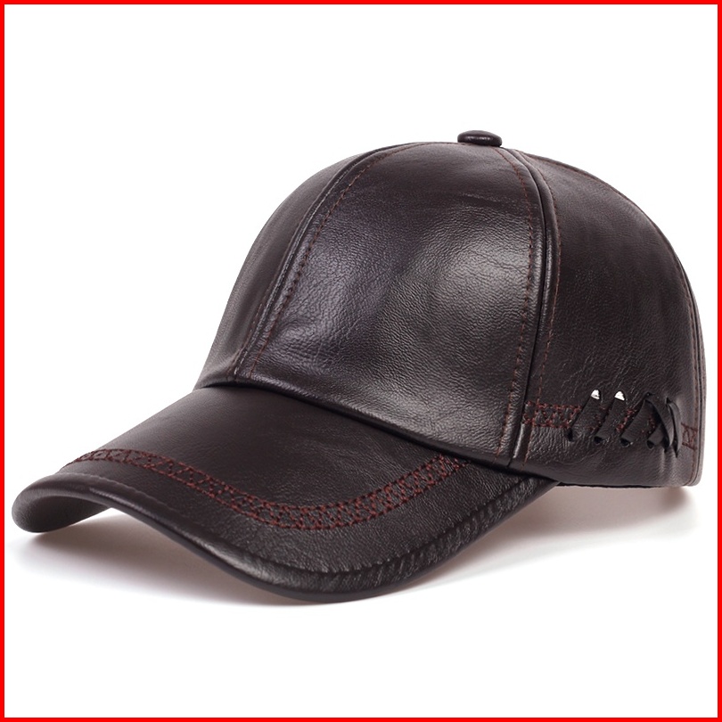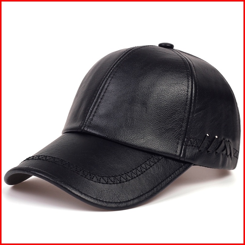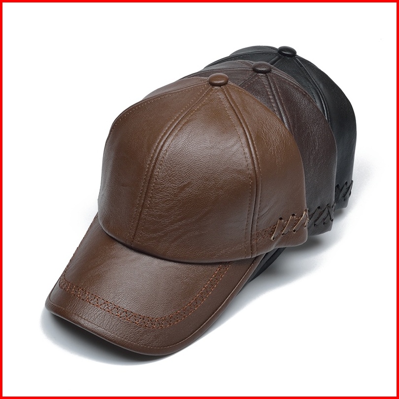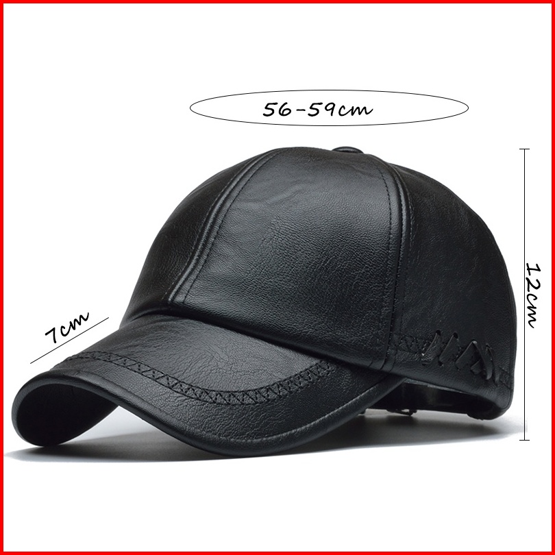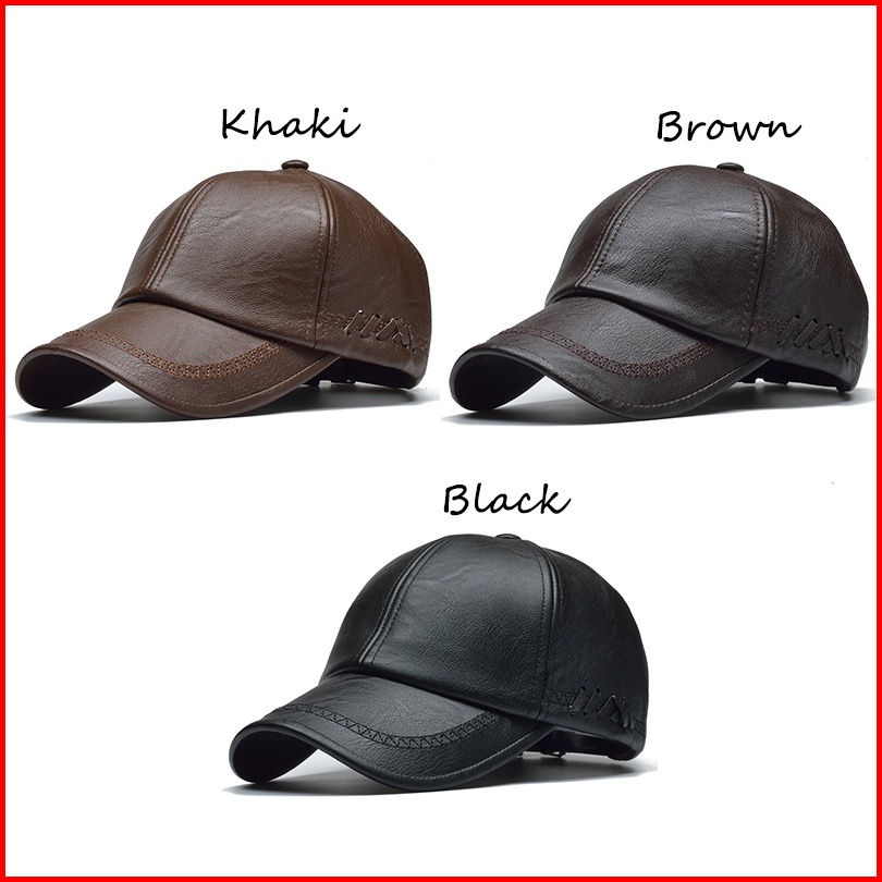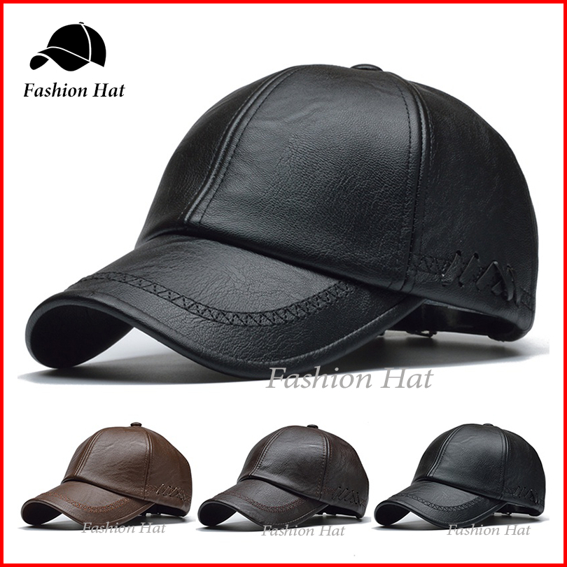 Topi Pria Dewasa Baseball Hat Casual Sport Pria Wanita Topi Kulit Leather Pu