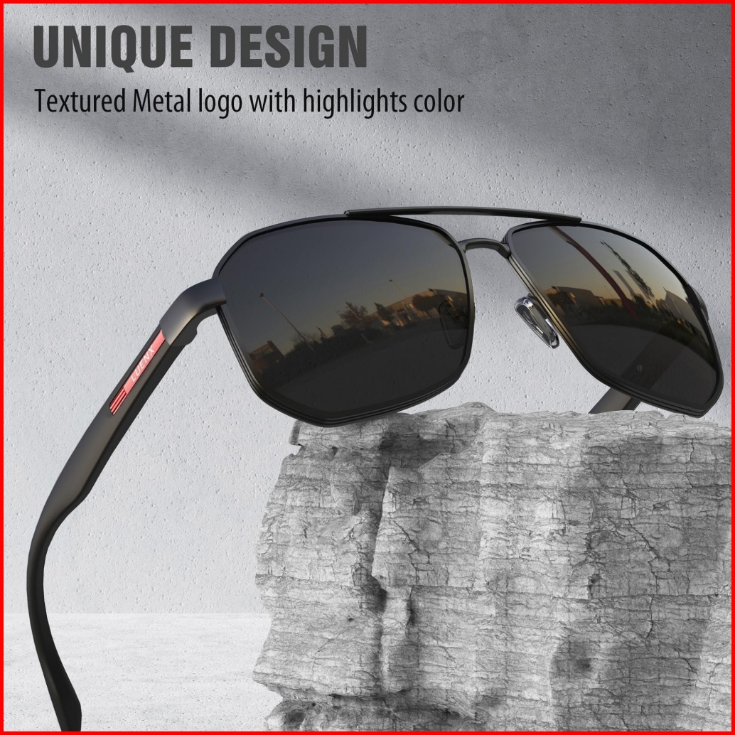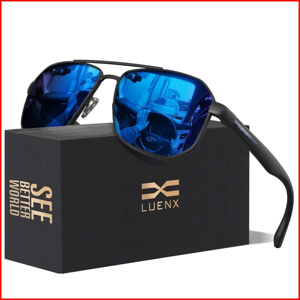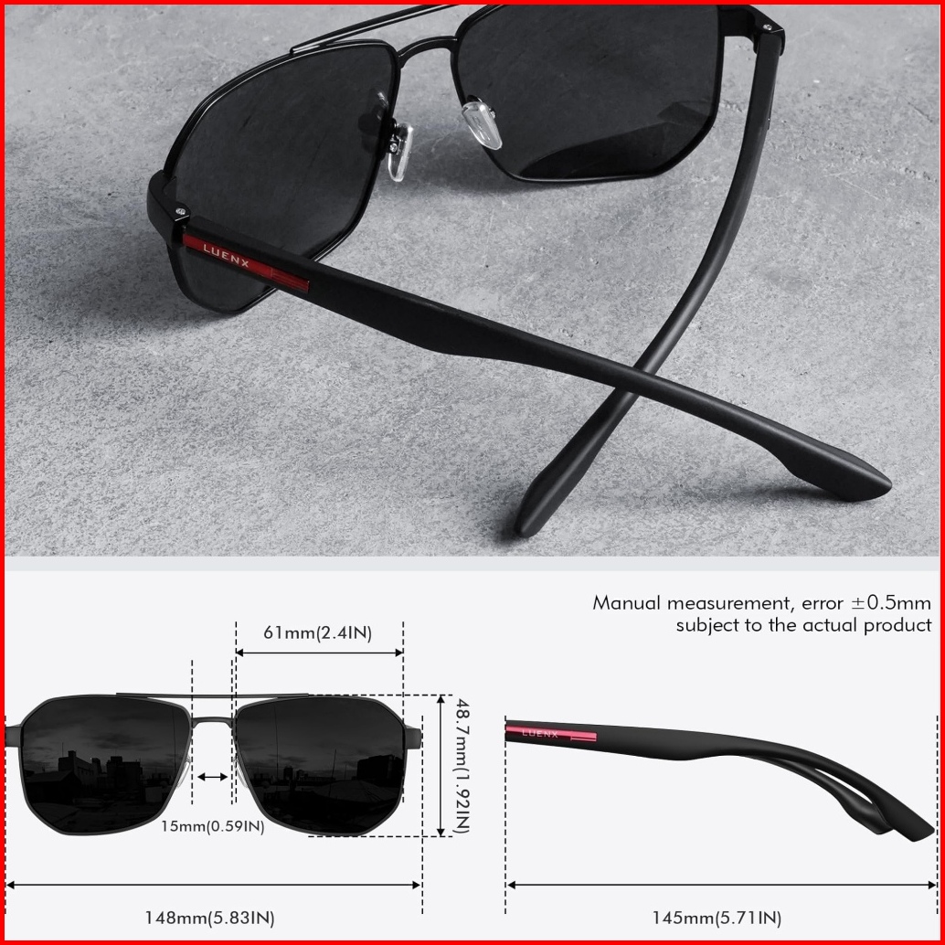 Luenx Kacamata Hitam Aviator Sunglasses Unisex Square Polarized Polygon Lens - Uv 400 Protection With Accessories 61mm D