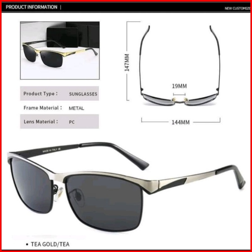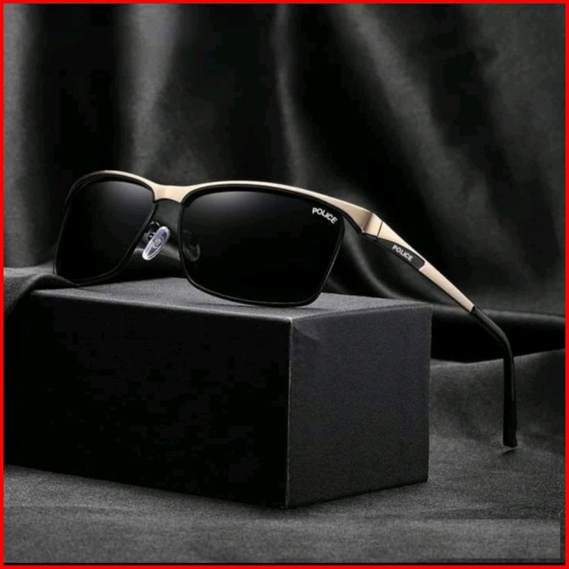 Promoooo Kacamata Police Polarized Anti Silau Lensa Kaca Frame Stainless Hitam Pria Sunglasses Murah P7868 Lensa Anti Uv