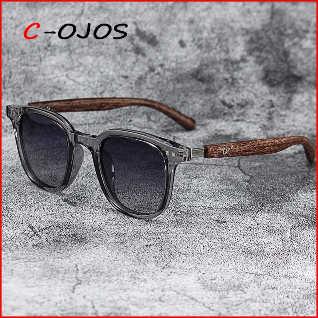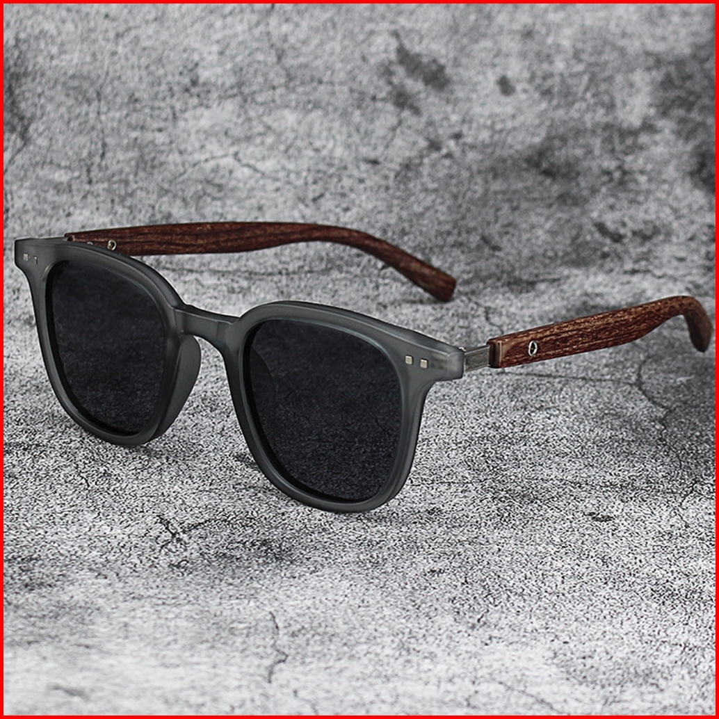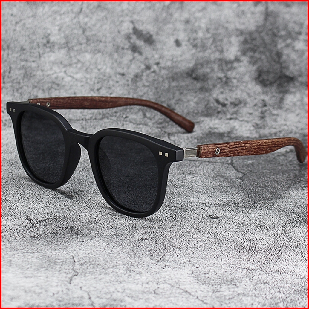 Kacamata Hitam Bingkai Kayu Retro Pria Baru Kacamata Hitam Terpolarisasi Antik Persegi Merek Klasik Kacamata Berkendara