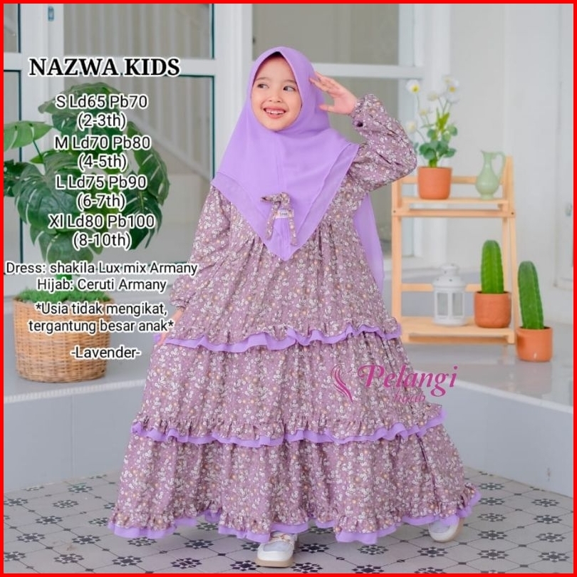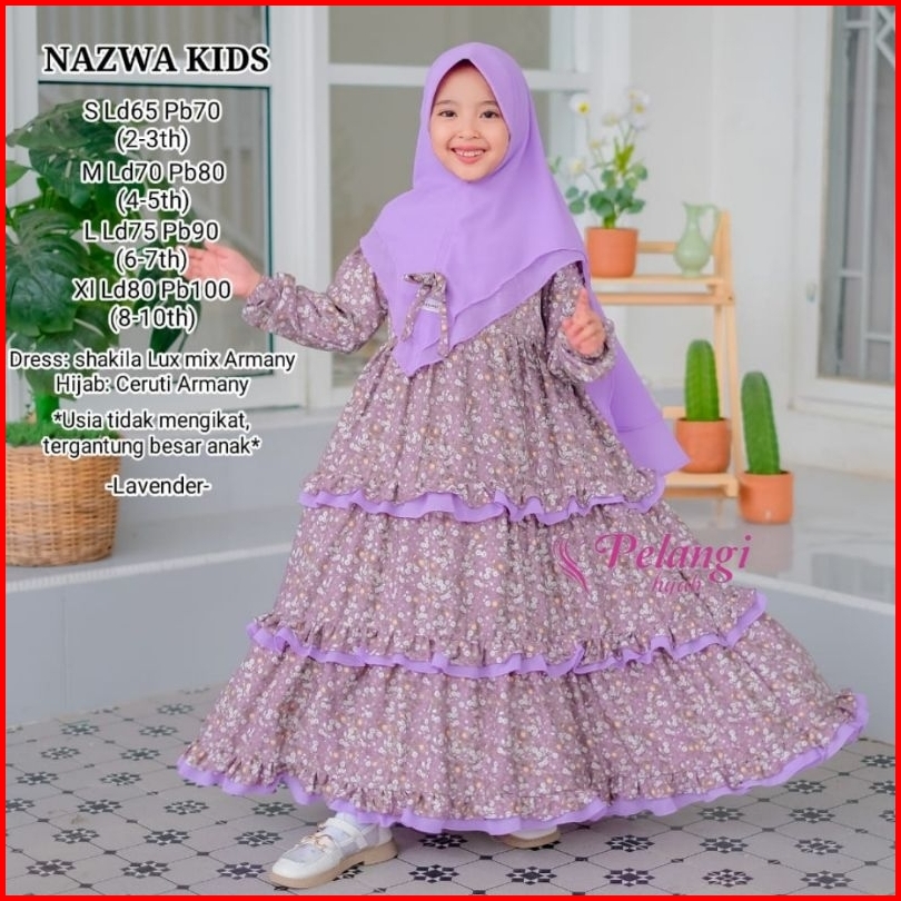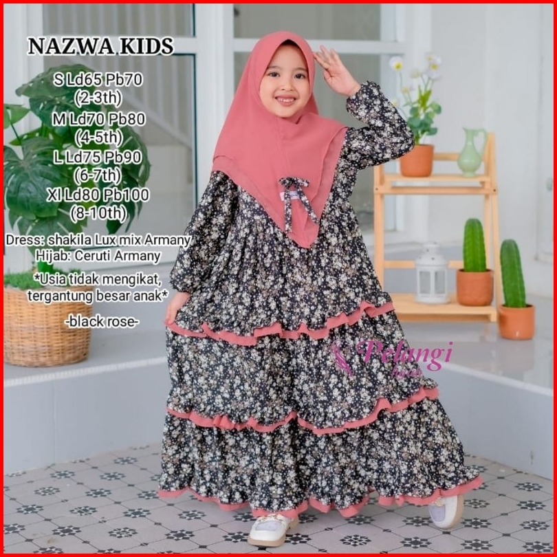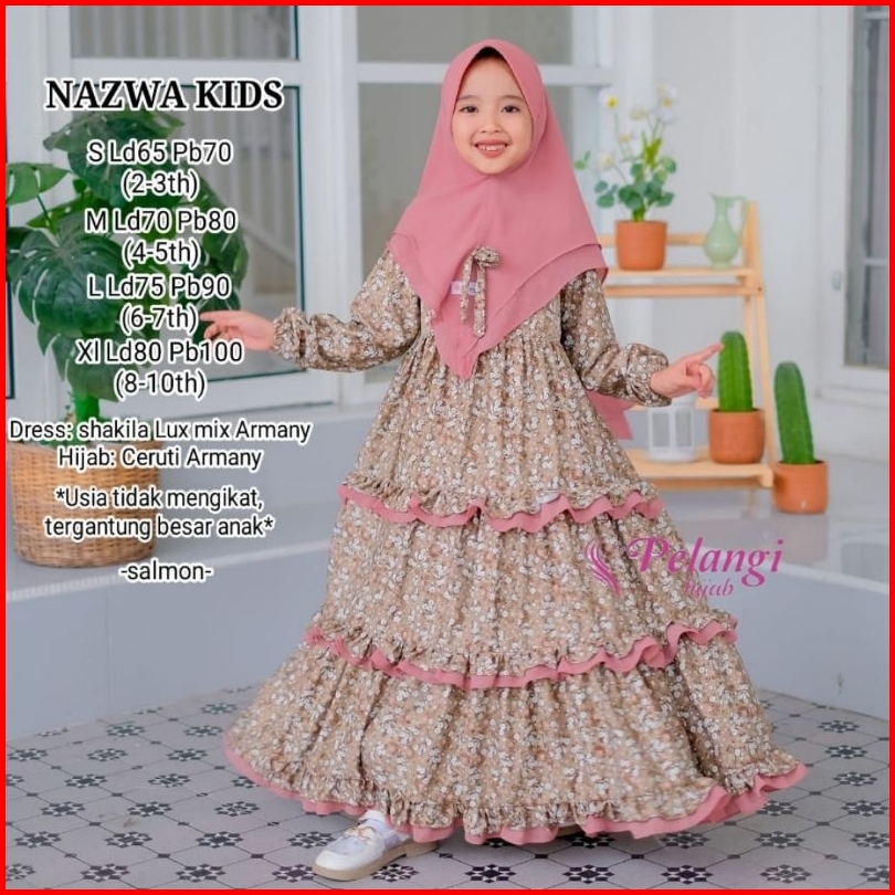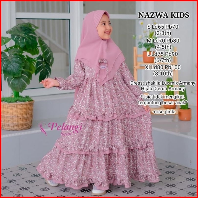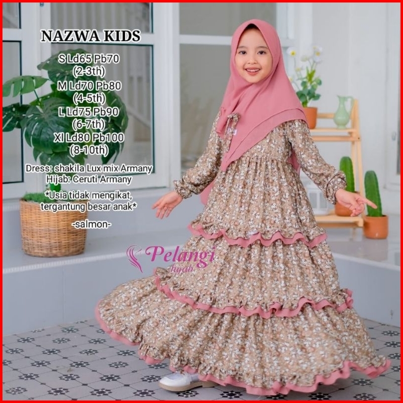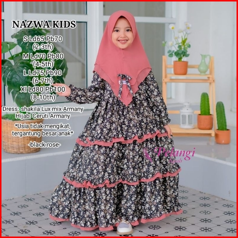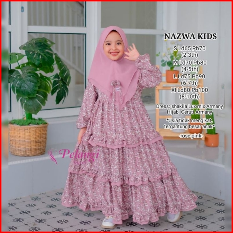 Nazwa Set Dress Gamis Anak Susun Motif Bunga Free Jilbab Khimar