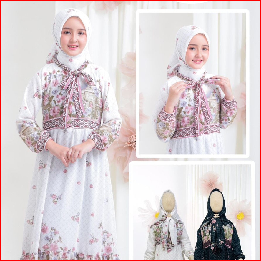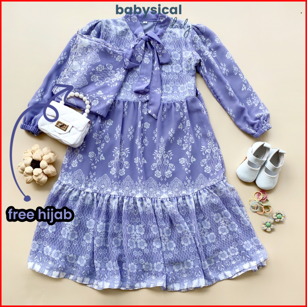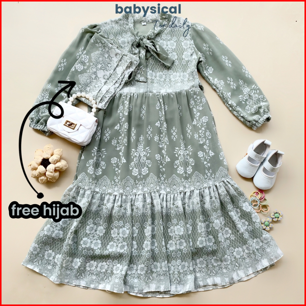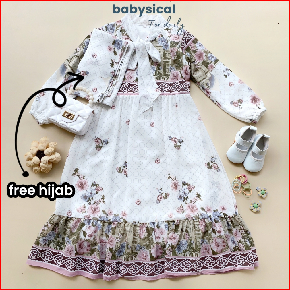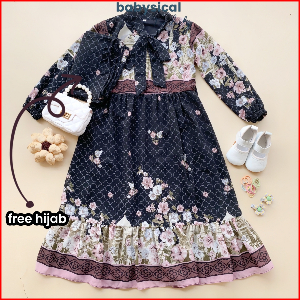 Babysical 3-12 Tahun Humaira Gamis Free Hijab Gamis Anak Perempuan Ceruty Dress Panjang Muslim 3 4 5 6 7 8 9 10 11 12 Ta