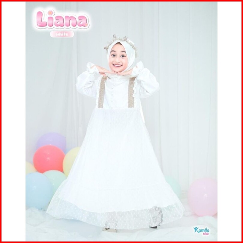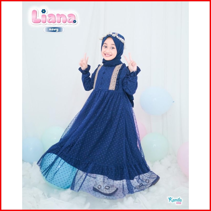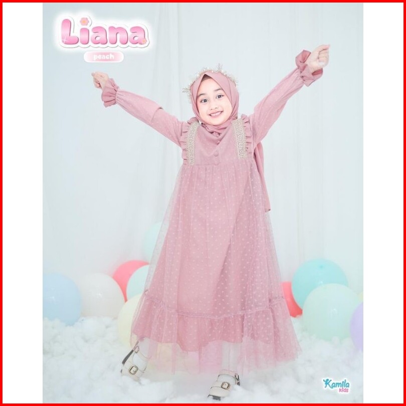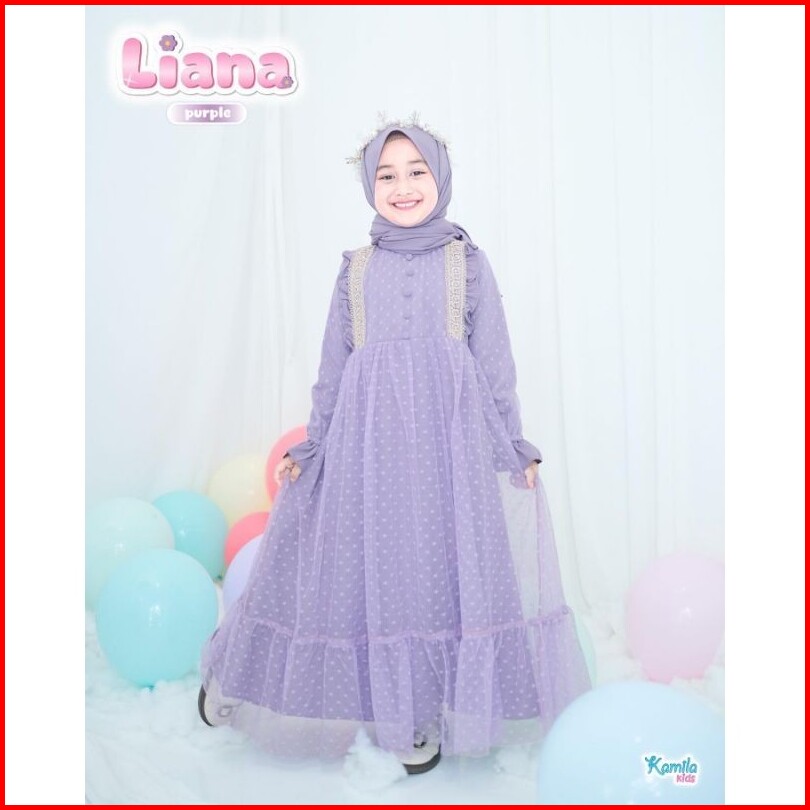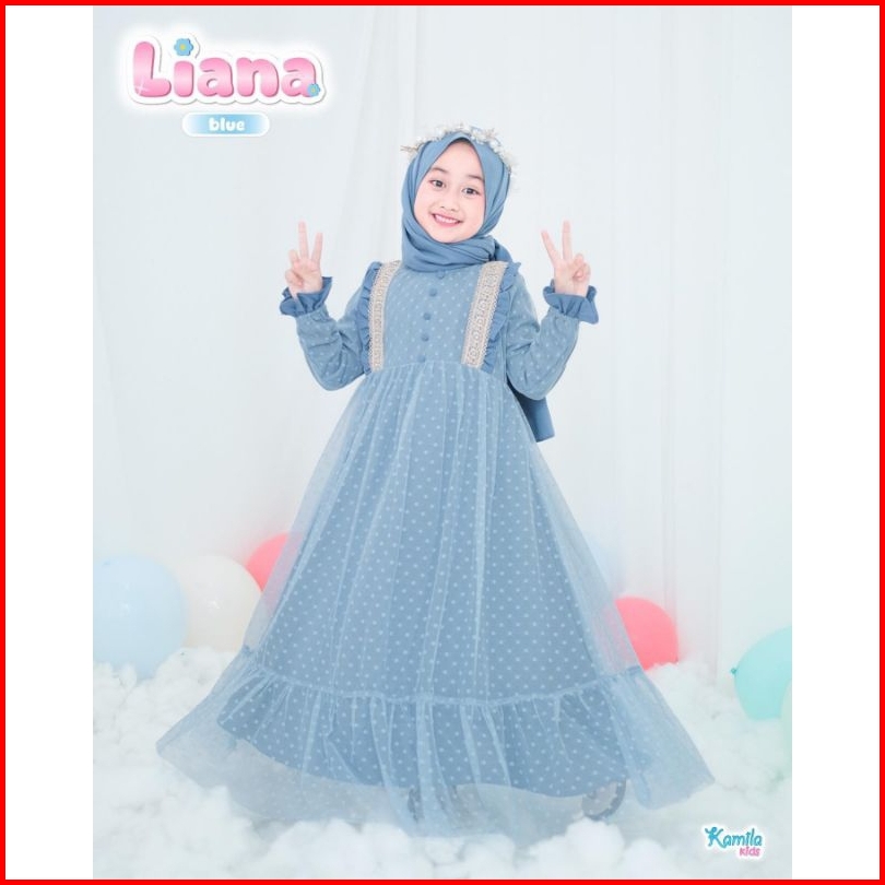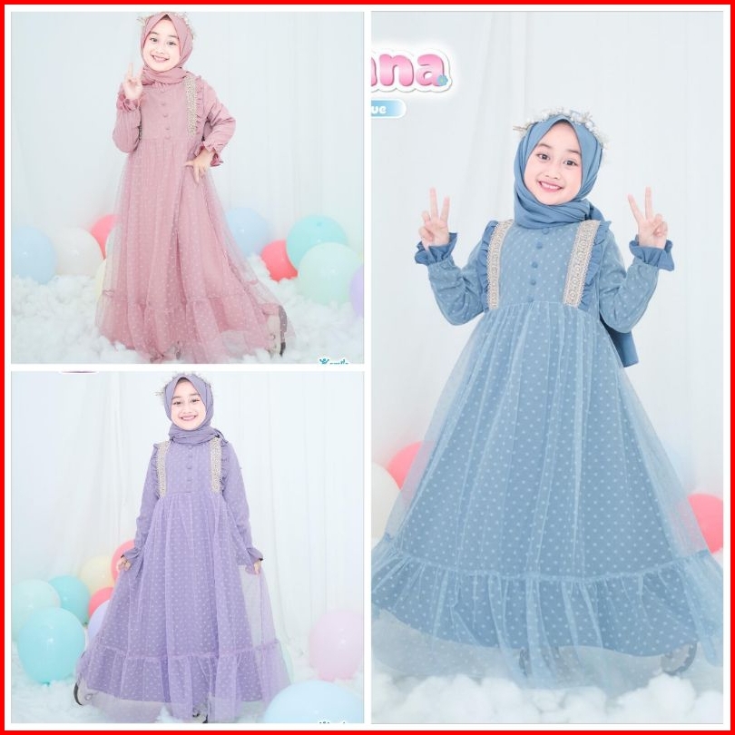Liana Kids Free Phasmina Usia 5-14 Thn Uk M L Xl Bahan Crinkle Airflow Mix Tille Gamis Anak