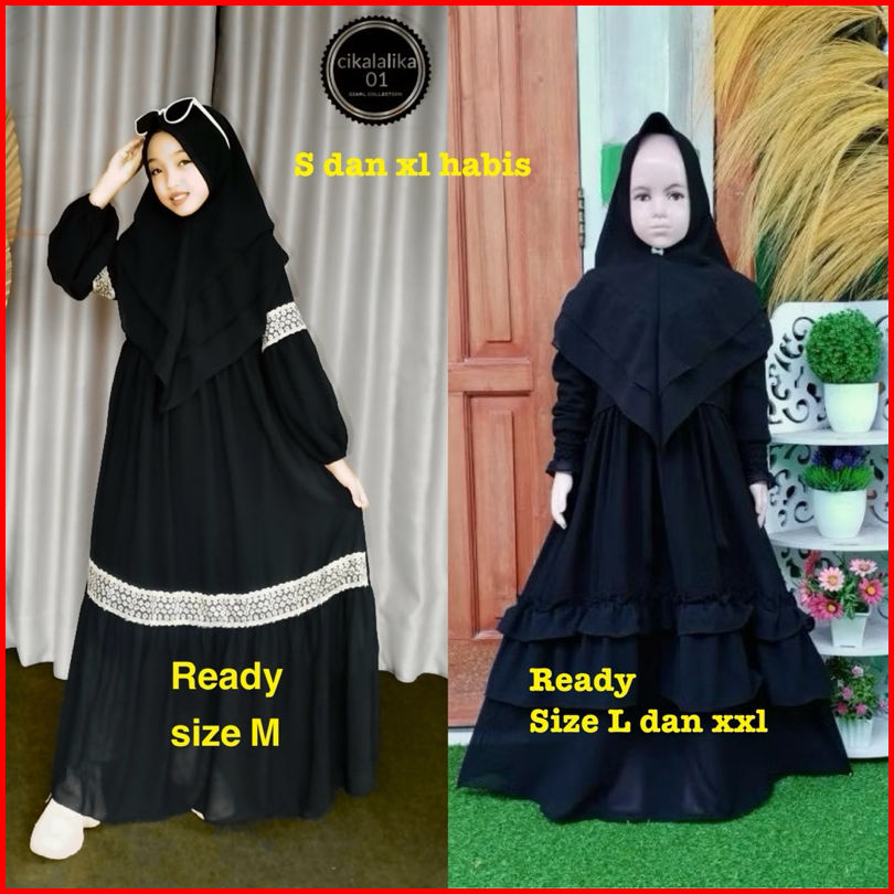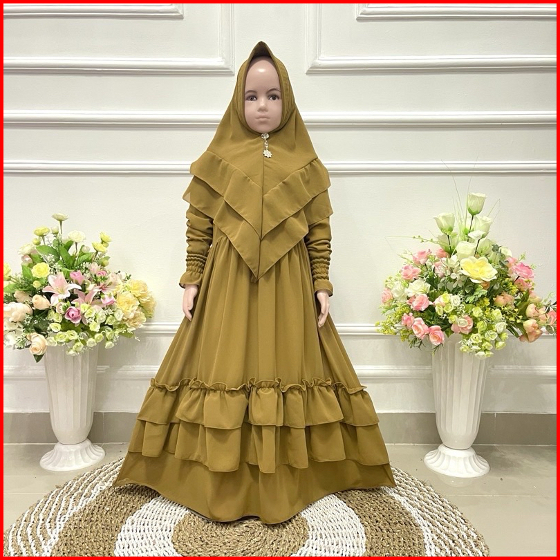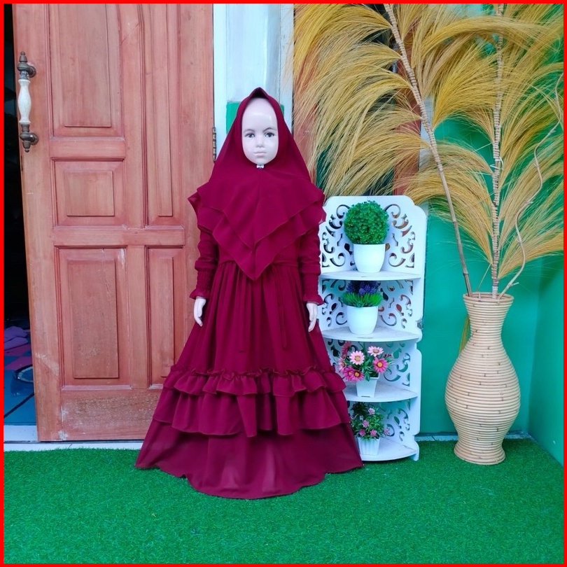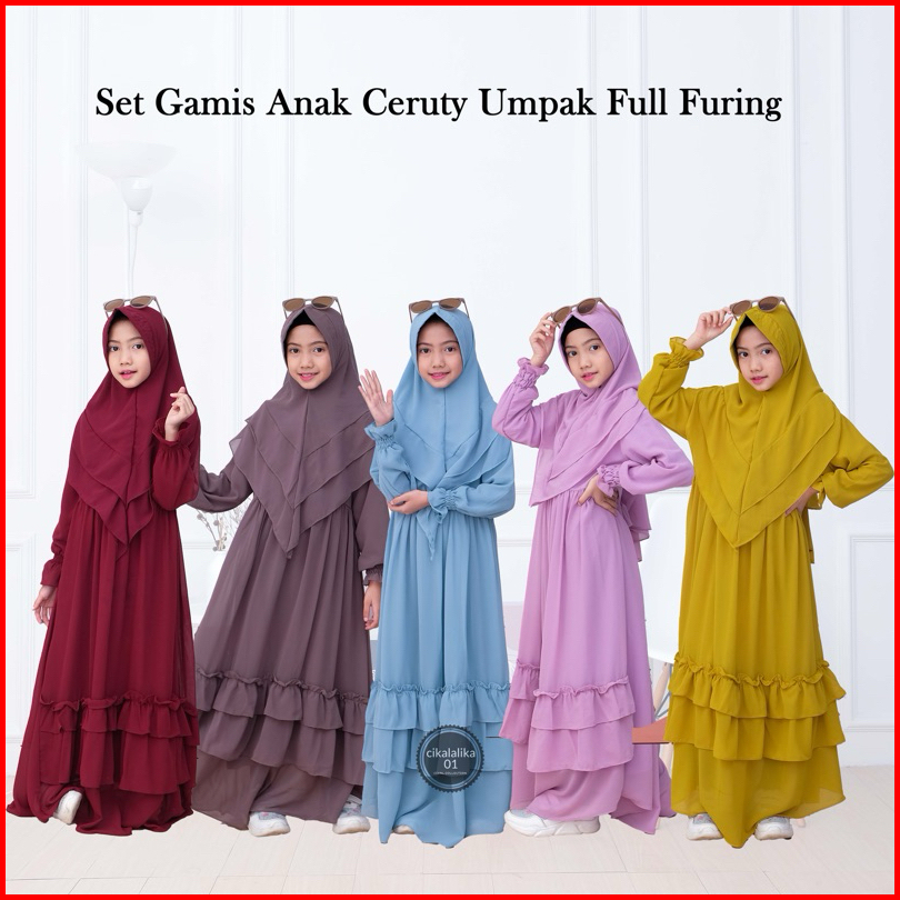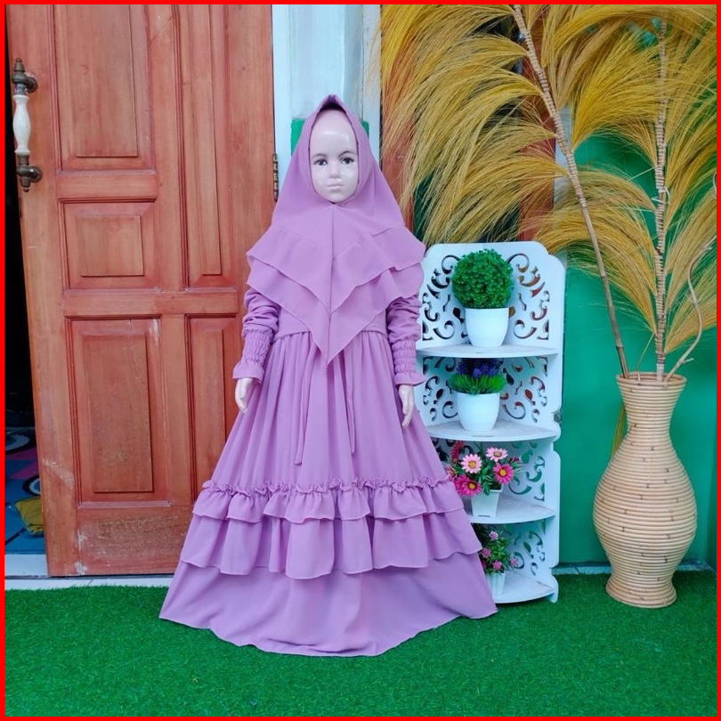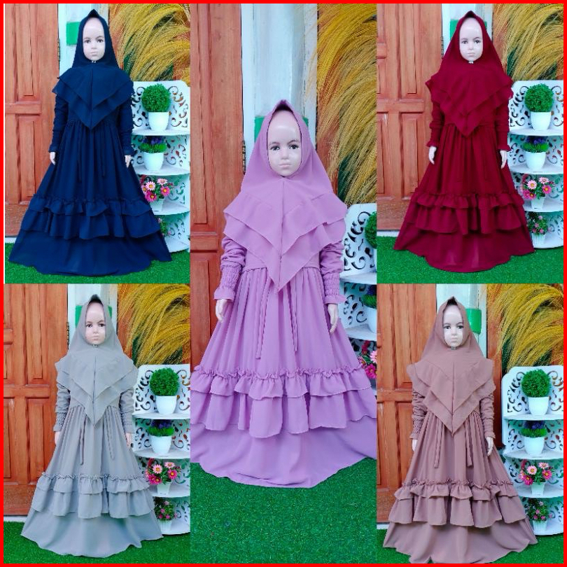 Gamis Anak Set Hijab Bahan Ceruty Babydoll Polos