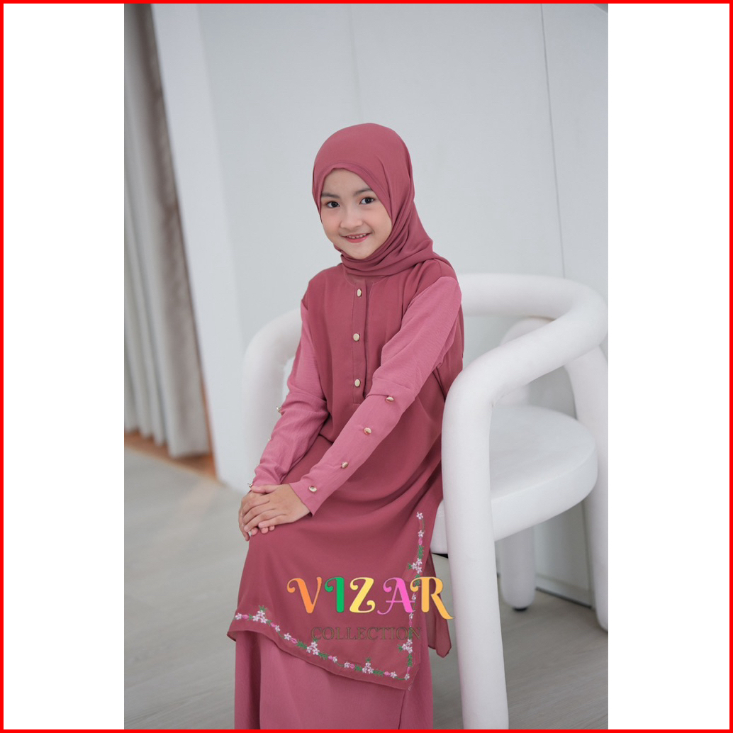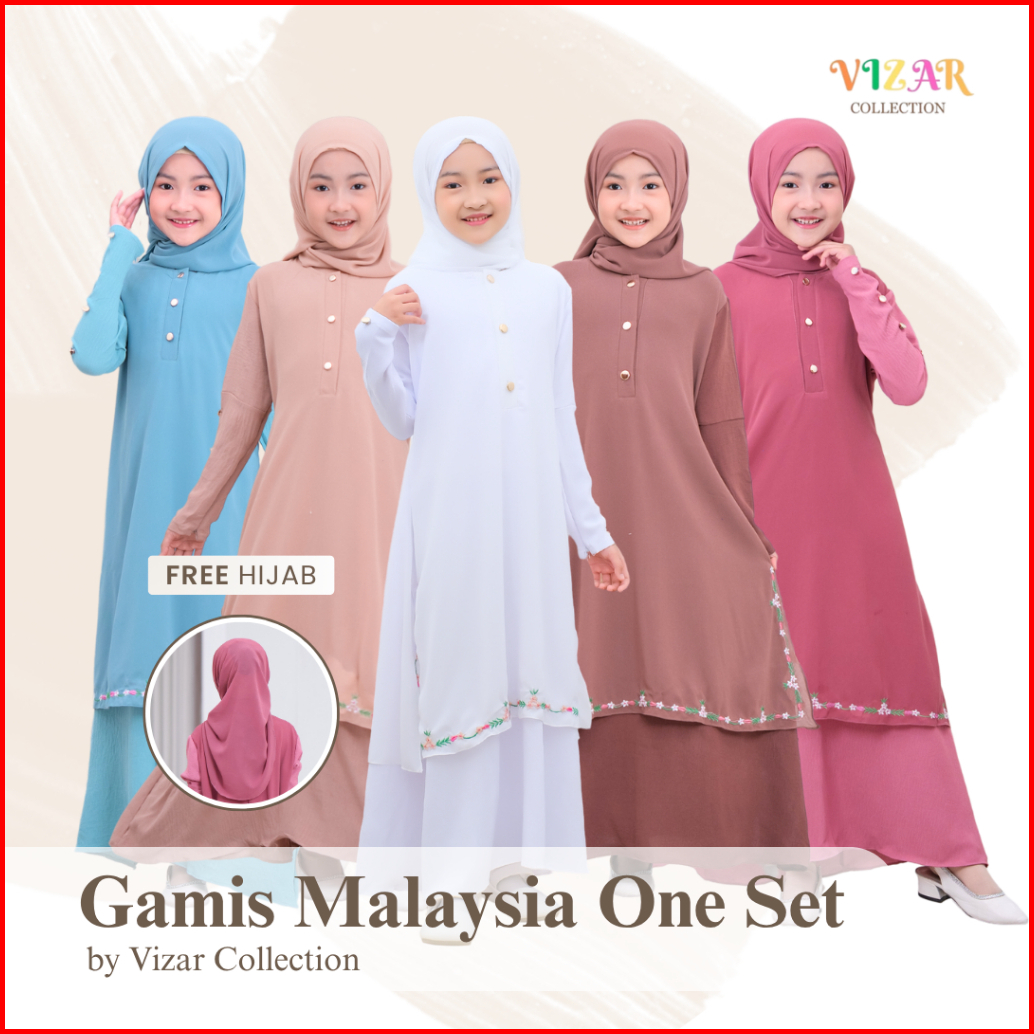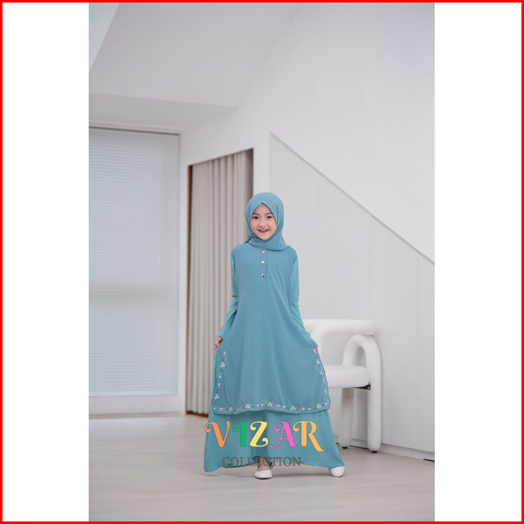 Vizar Collection - Gamis Malaysia Gamis Anak Satu Set Gamis Ceruty Anak Gamis Bordir