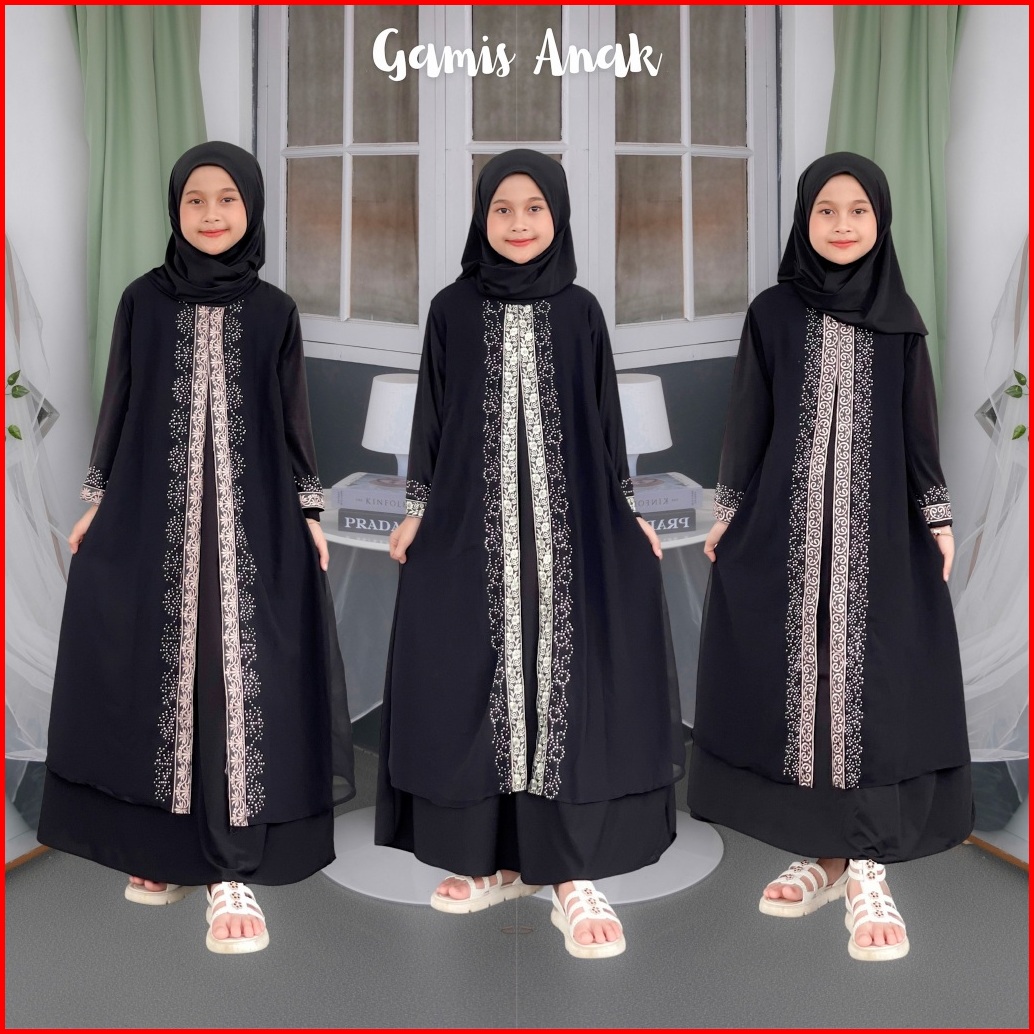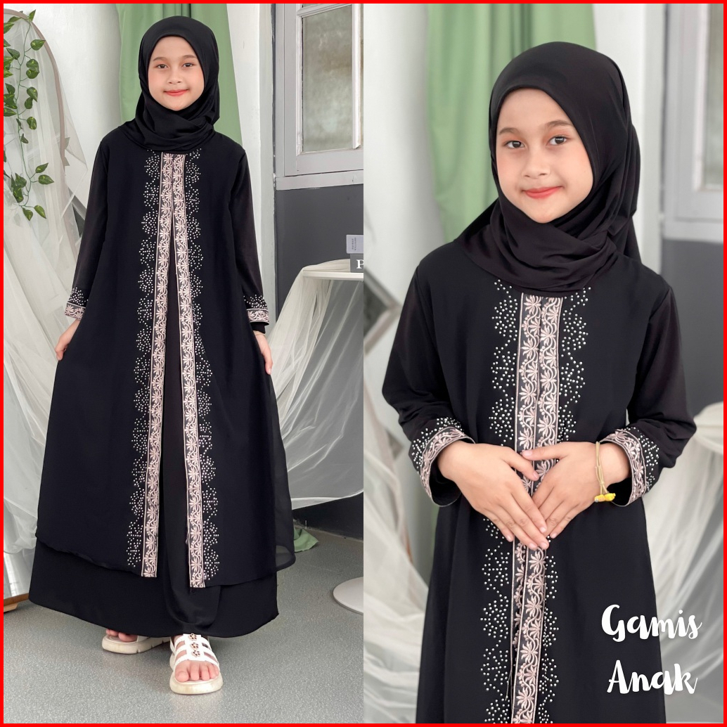 Gallery Exclusive Gamis Abaya Anak Jetblack Premium Bordir Payet 1 - 12 Tahun