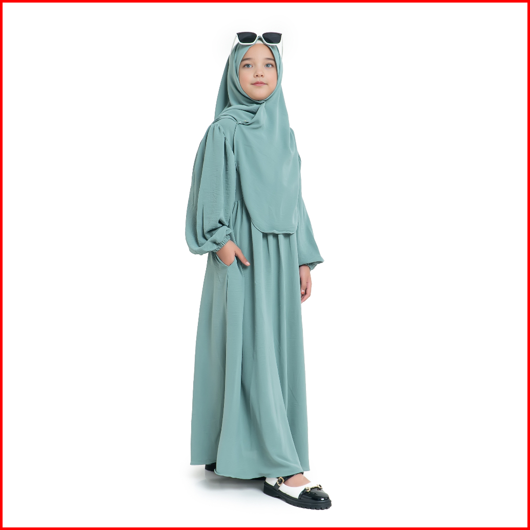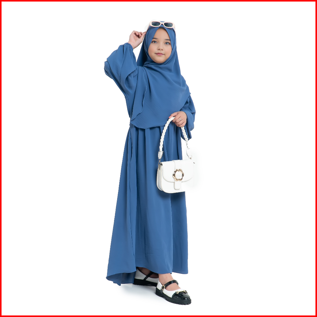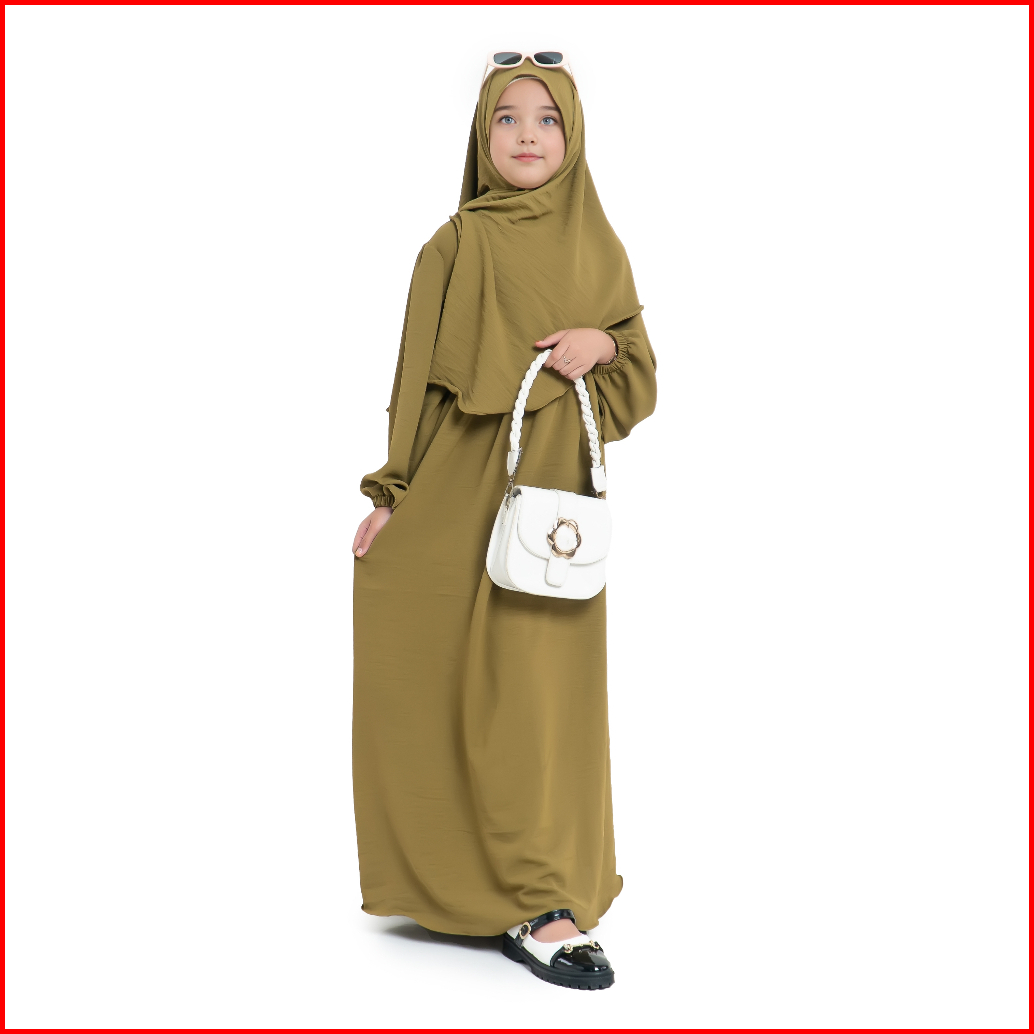 Syari Anak Perempuan Rummi Kids Setelan Baju Gamis Dress Plus Phasmina Ovale Usia 4th Sampai 12th