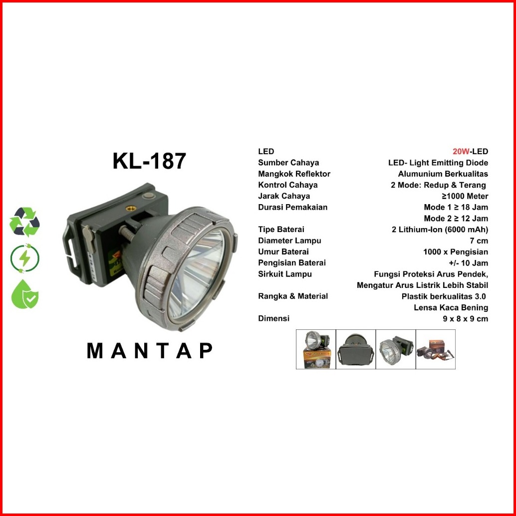 Senter Kepala Dony Kl-187 Mantap Led 20w Cahaya Putih Dan Kuning