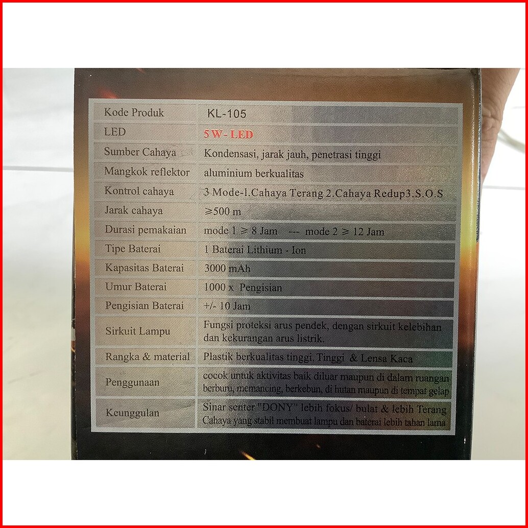 Senter Kepala Cas Murah 10w Led Dony Kl-105