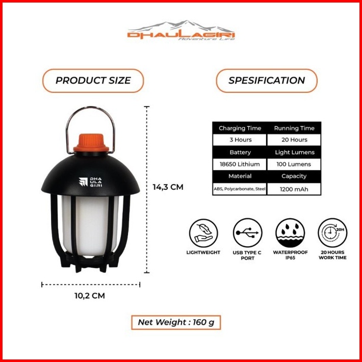 Lampu Outdoor Dhaulagiri Vintage 86 Bisa Dicas Usb Type C Rechargeable