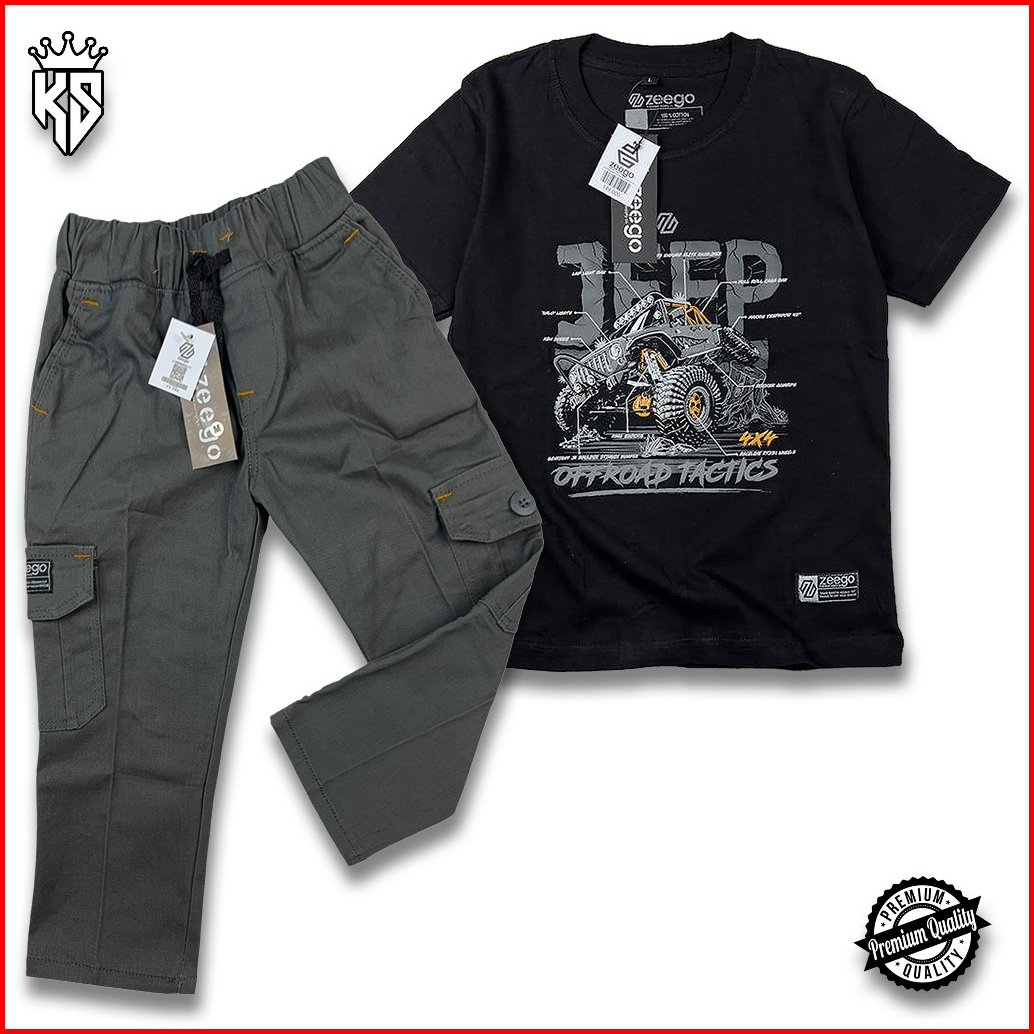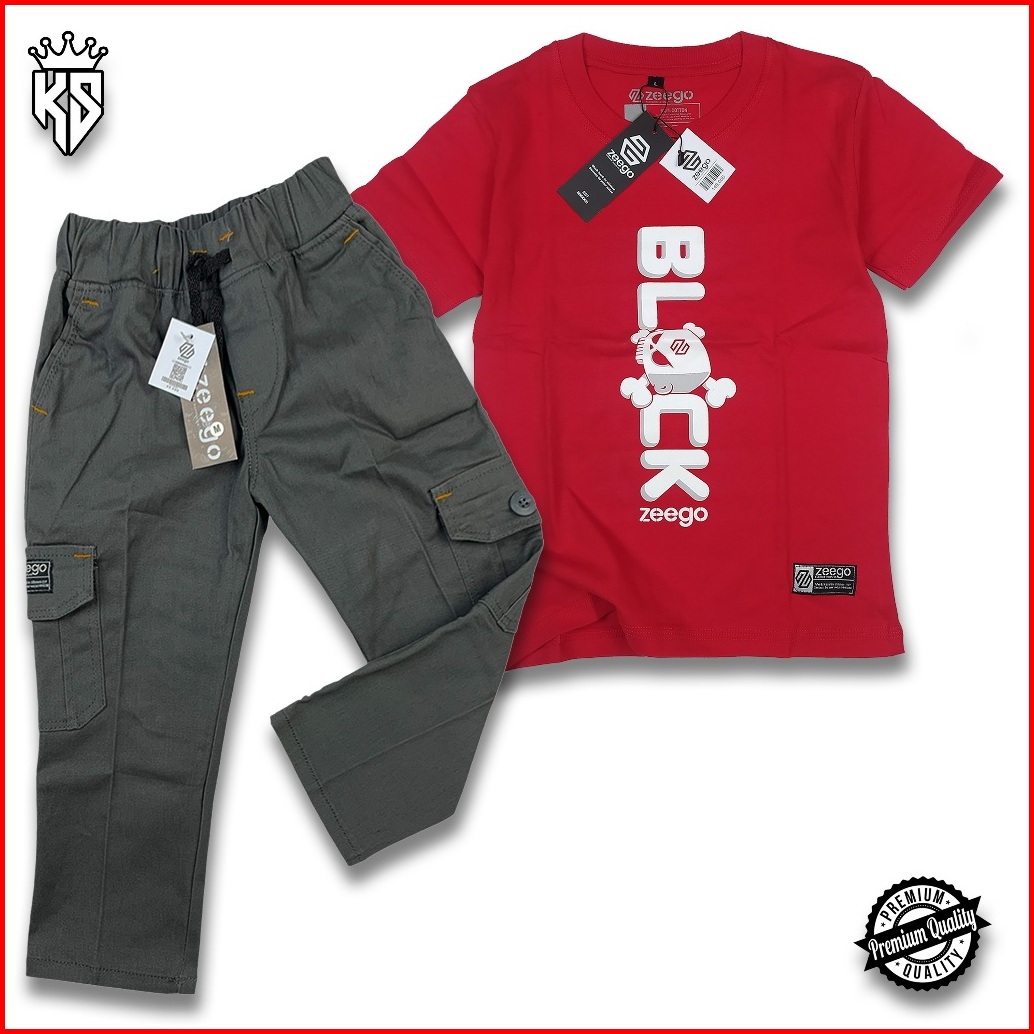 Setelan Anak Laki Laki Celana Panjang Kargo Dan Baju Kaos Usia 3 - 12 Tahun