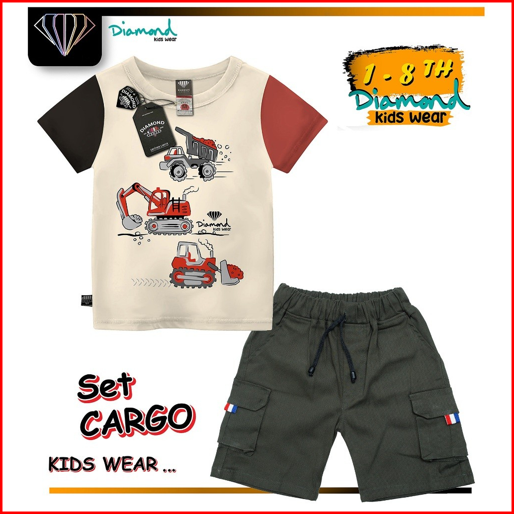 Diamondkids - Setelan Cargo Anak Laki-laki Motif Truck Beko Umur 1-8 Tahun Bahan Catton30s Terlaris
