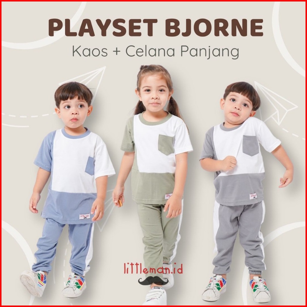 Playset Anak Bjorne Series Setelan Baju Kaos Celana Panjang Nyaman Gaya Katun Premium Littleman.id