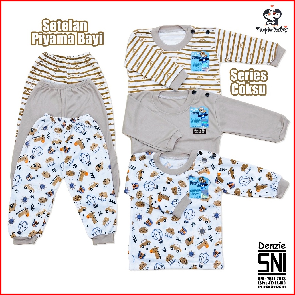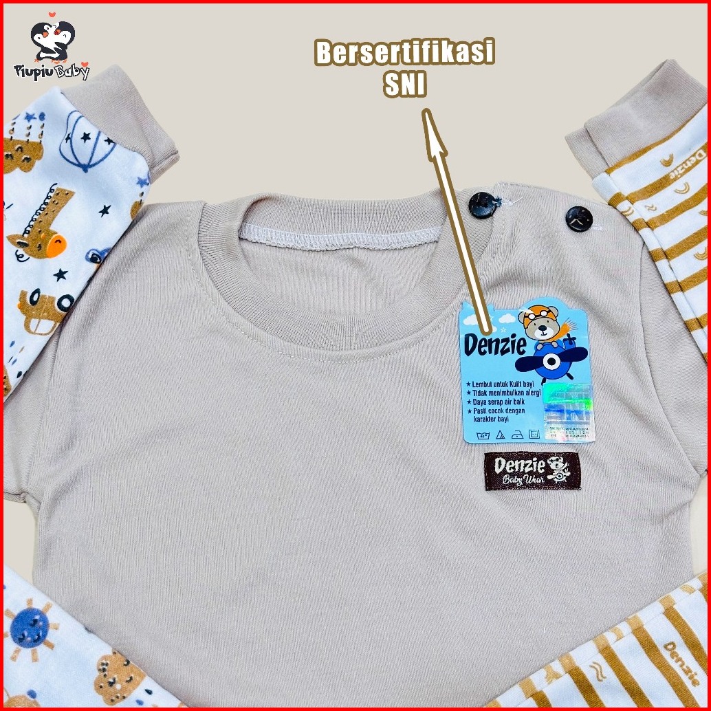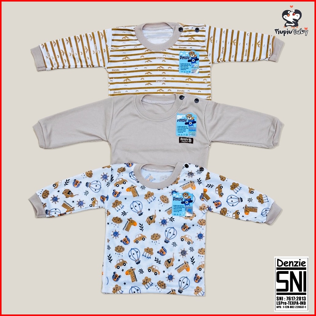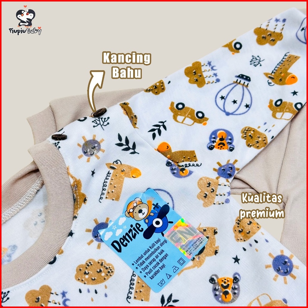 Top 1 Denzie - 3 Set Baju Bayi Seri Coksu Panjang Kancing Bahu Usia 3-24bulan Motif Karakter Polos