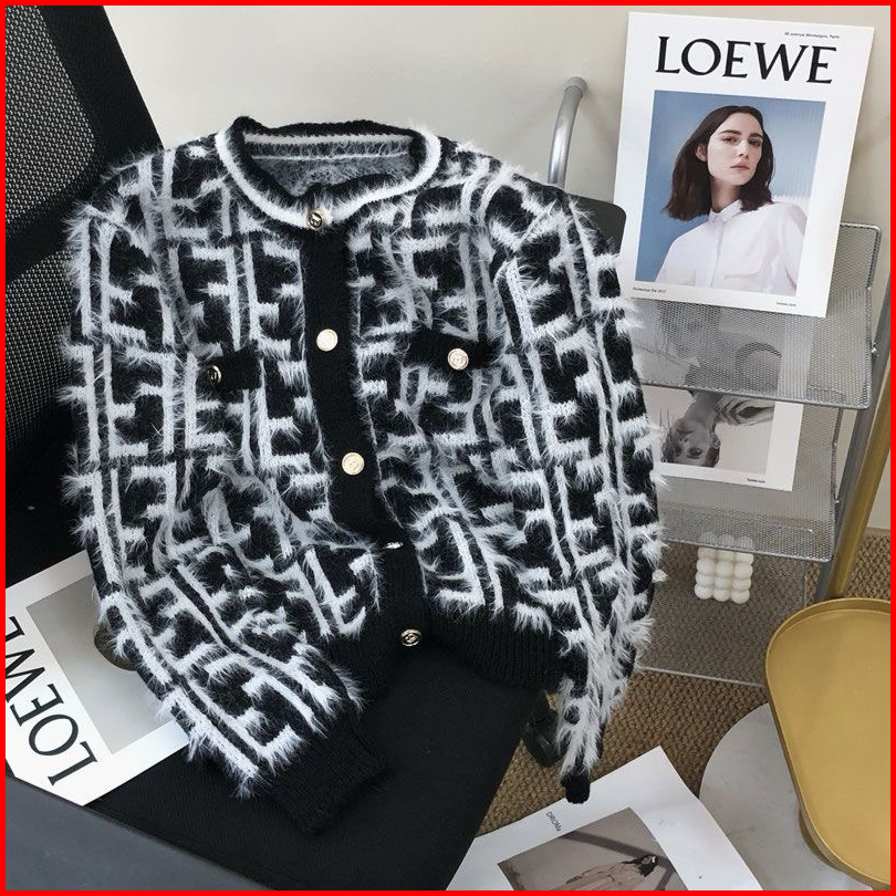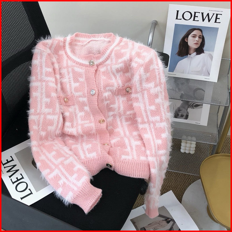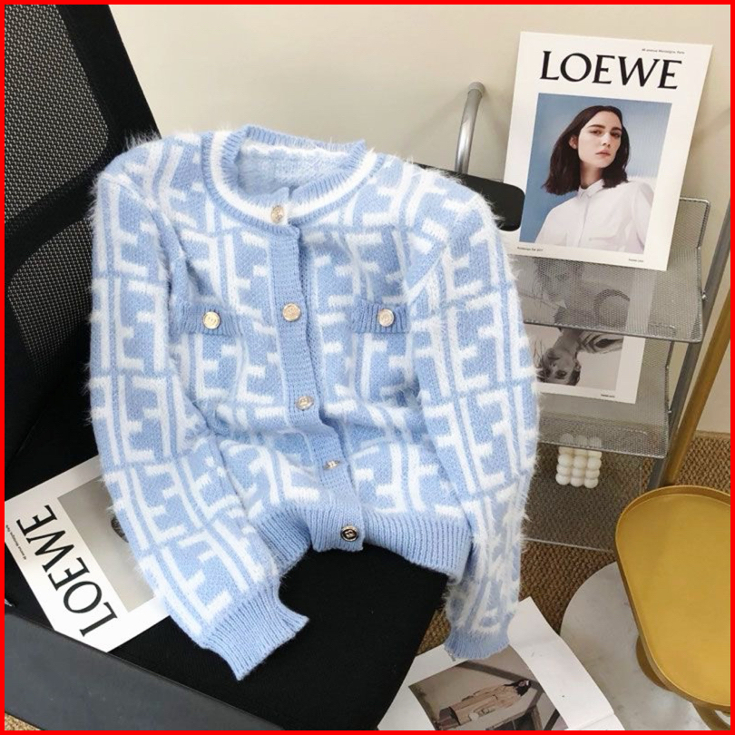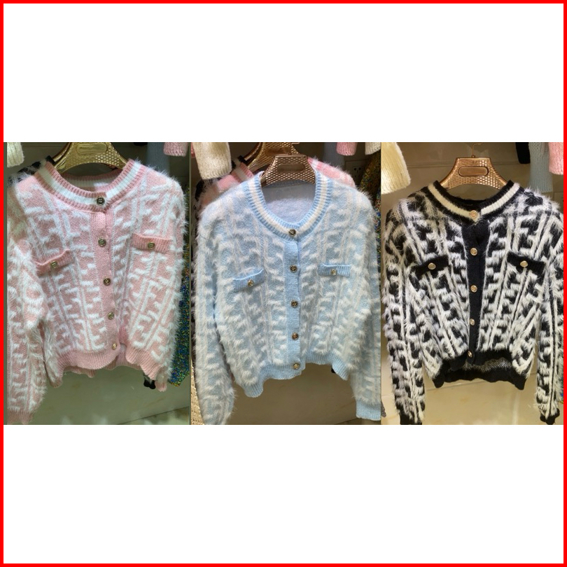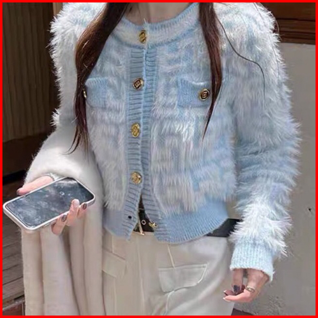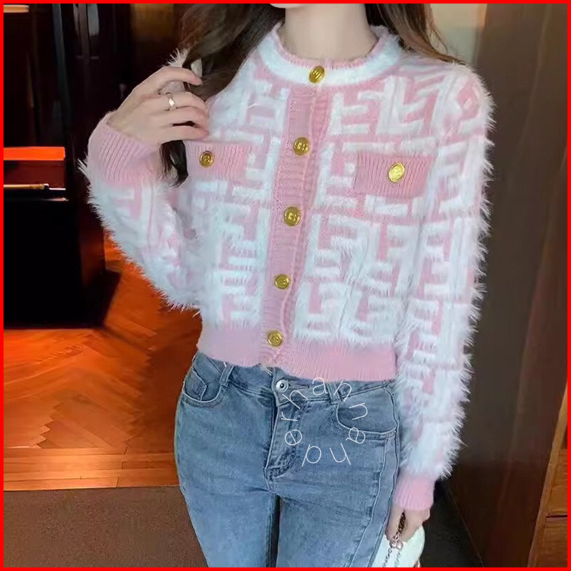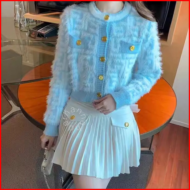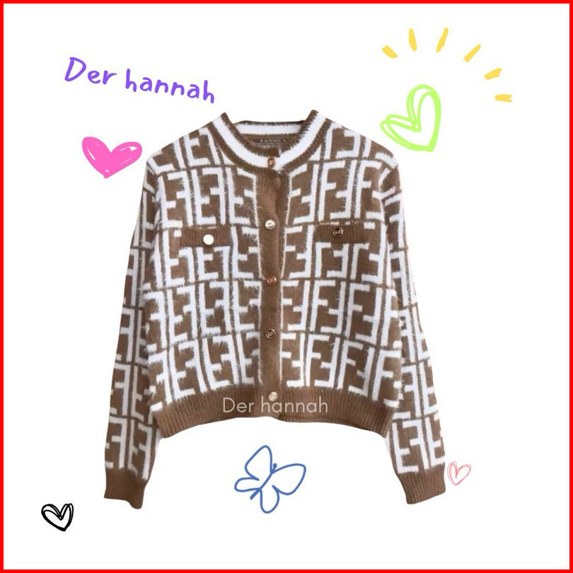 Der.hannah Felma Cardigan Crop Rajut Knit Bulu Fuzzy Lembut