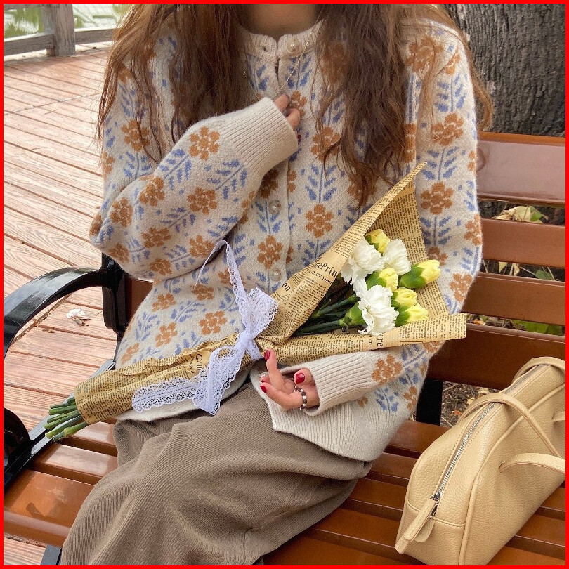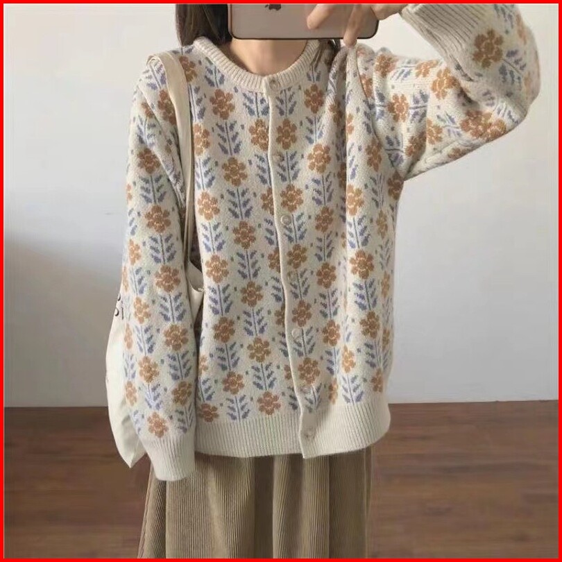 Cecn Cardigan Knit Bunga Import Knit Sweater Rajut Korea Gardigan Rajut Wanita