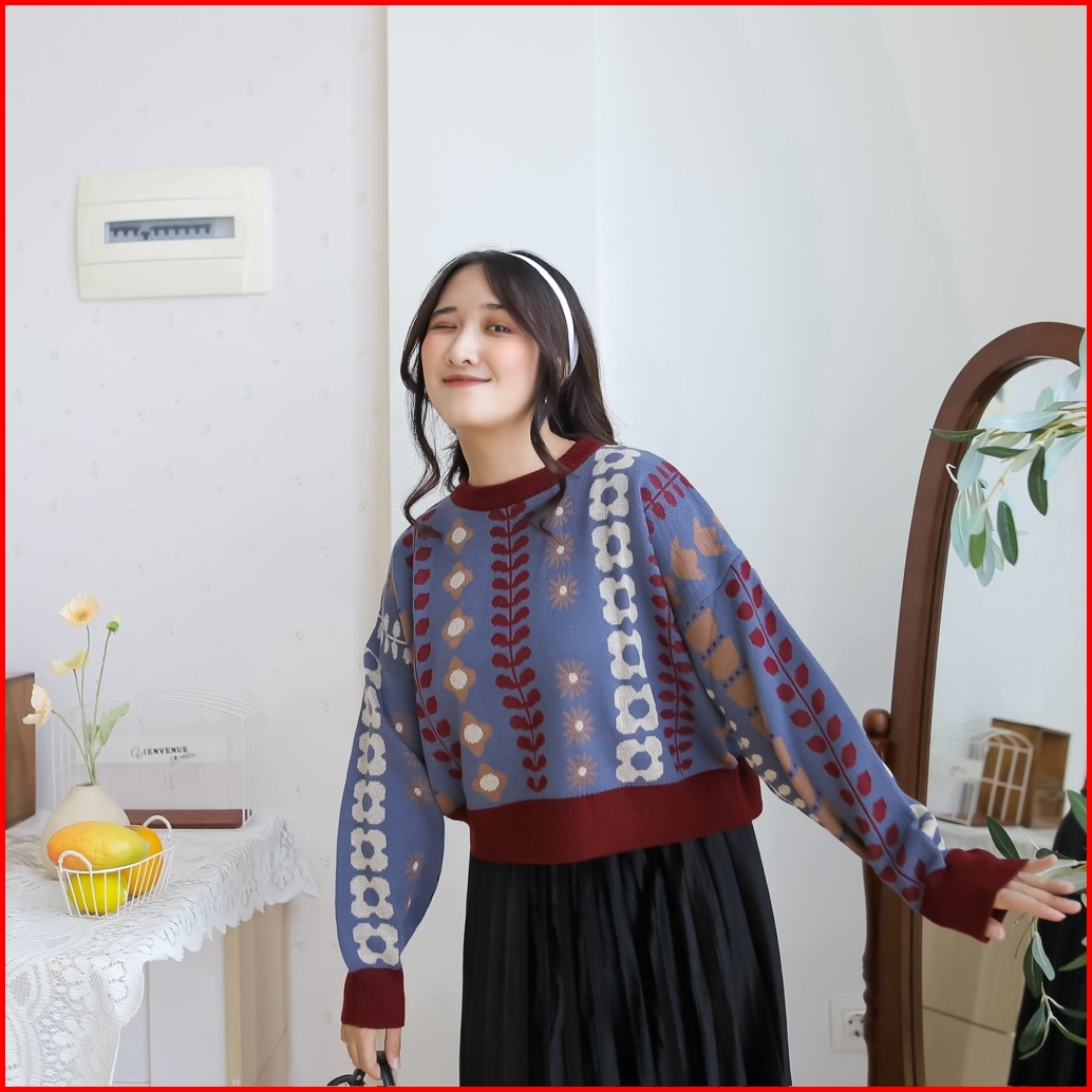 Midun.project - Lovy Crop Knit Atasan Rajut Wanita Korean Style