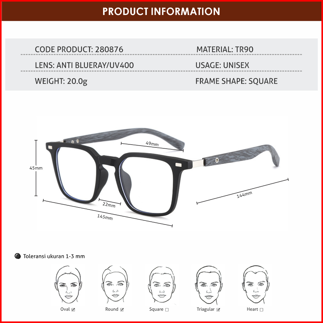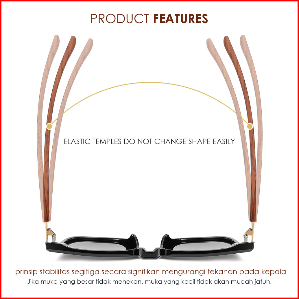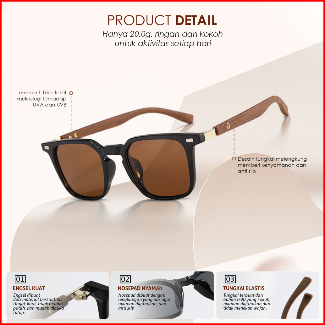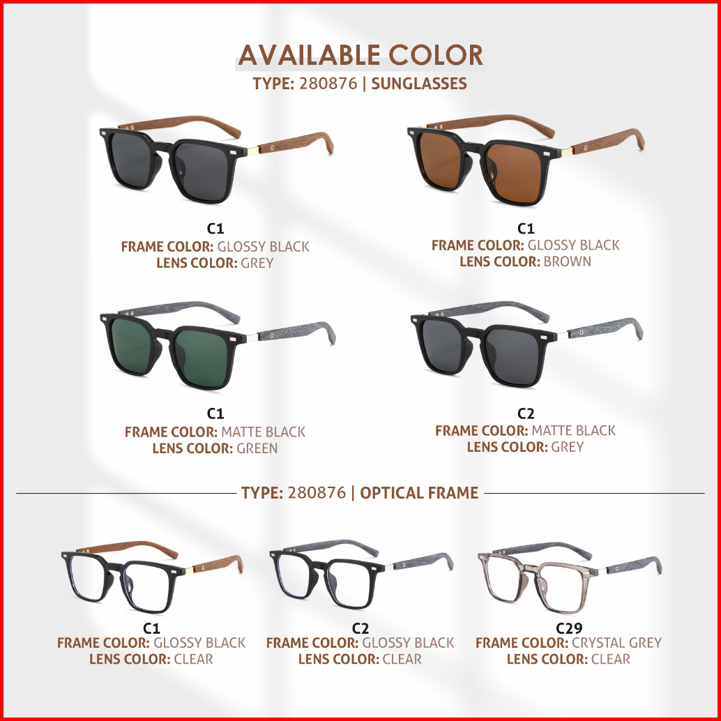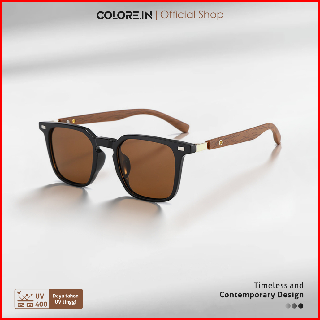 Colore.in Kacamata Hitam Kotak Pria Wanita Anti Uv Tungkai Kayu Wood Tr90 Eco-life Sunglasses 280876