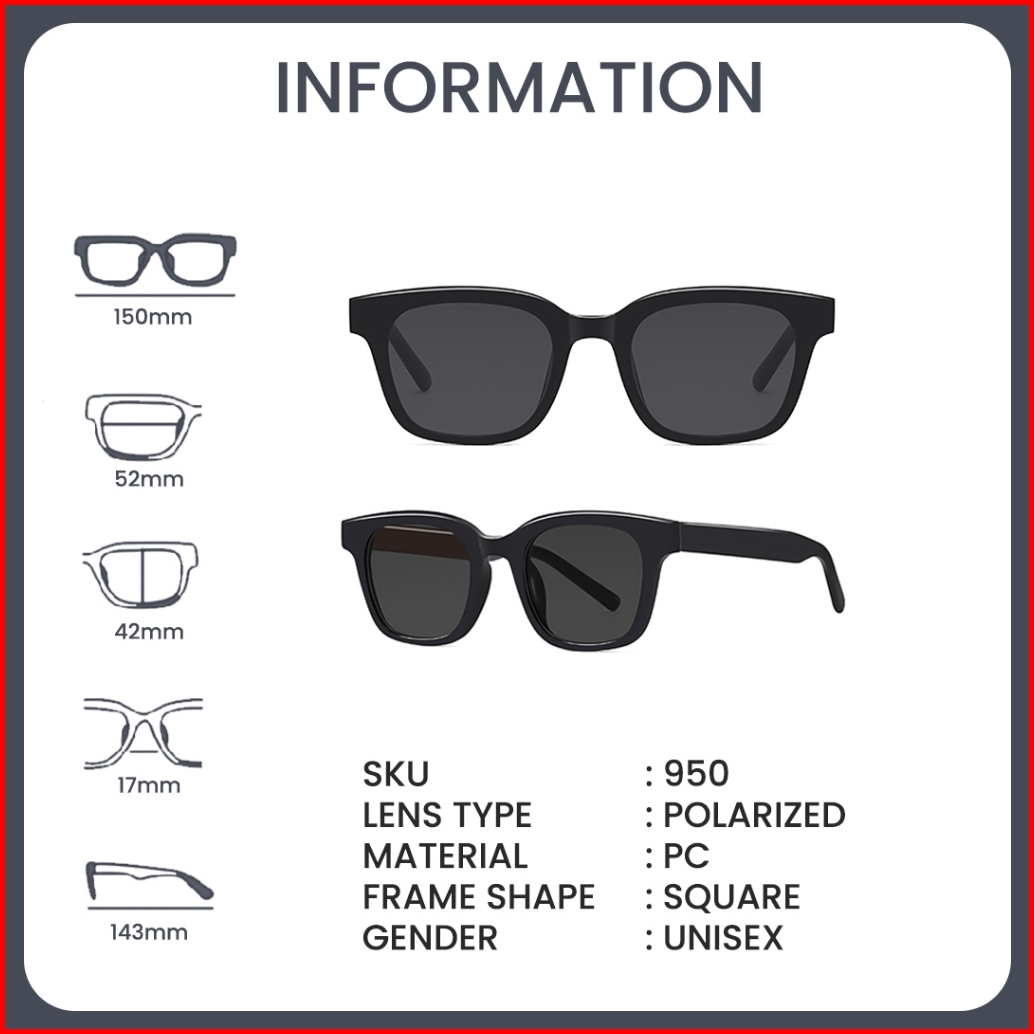 Robins Kacamata Hitam Sunglasses Kotak Polarized Anti Silau Uv400 Fashion Pria Wanita 950