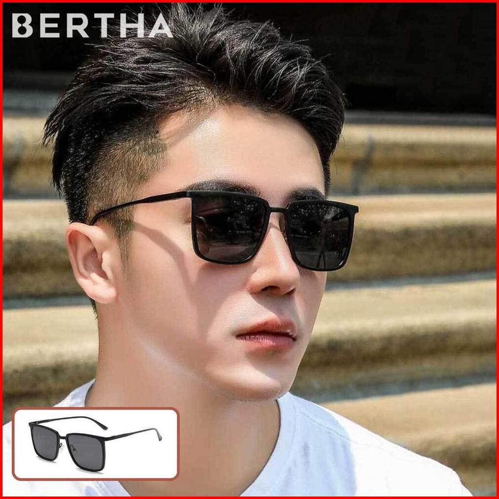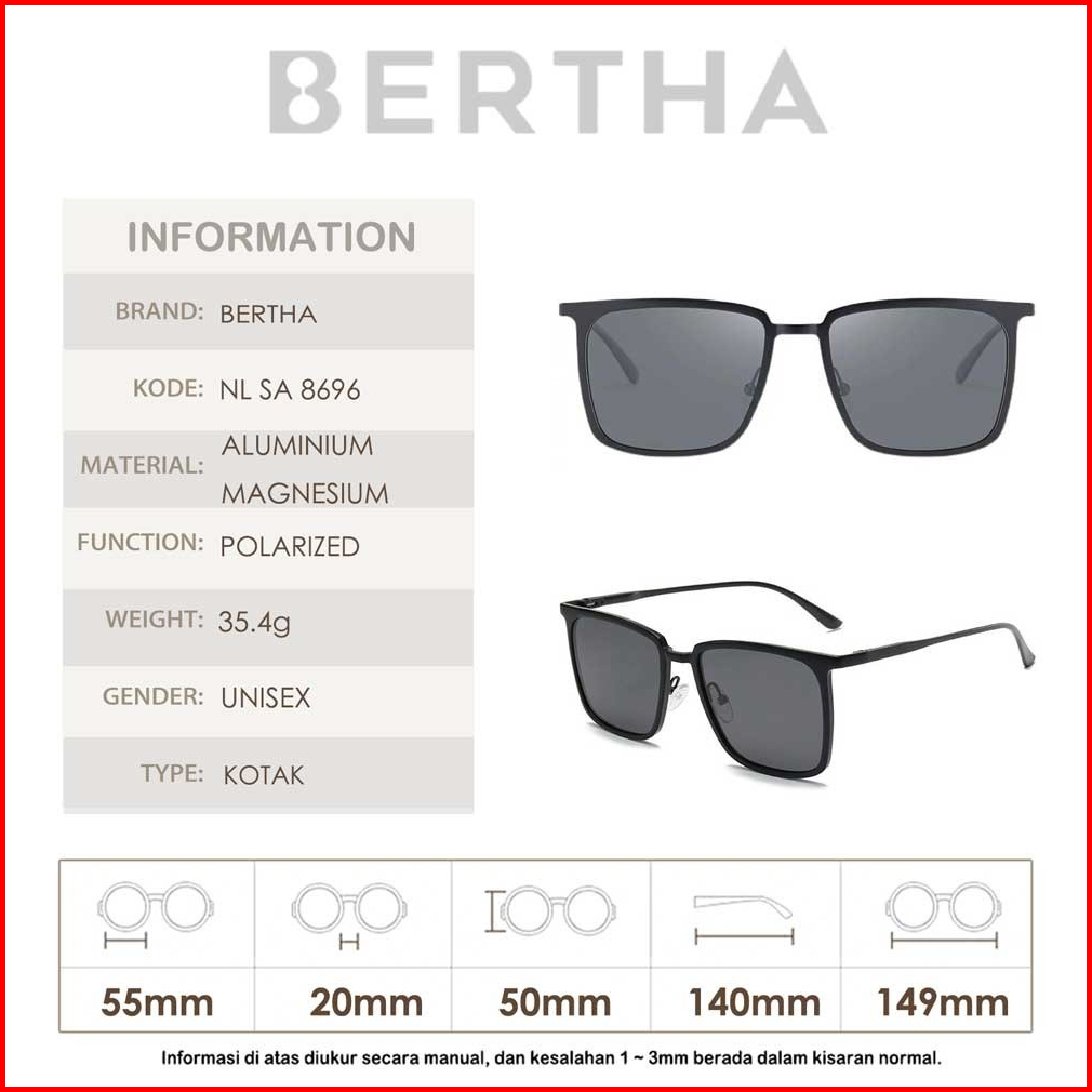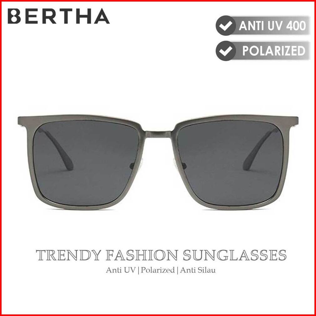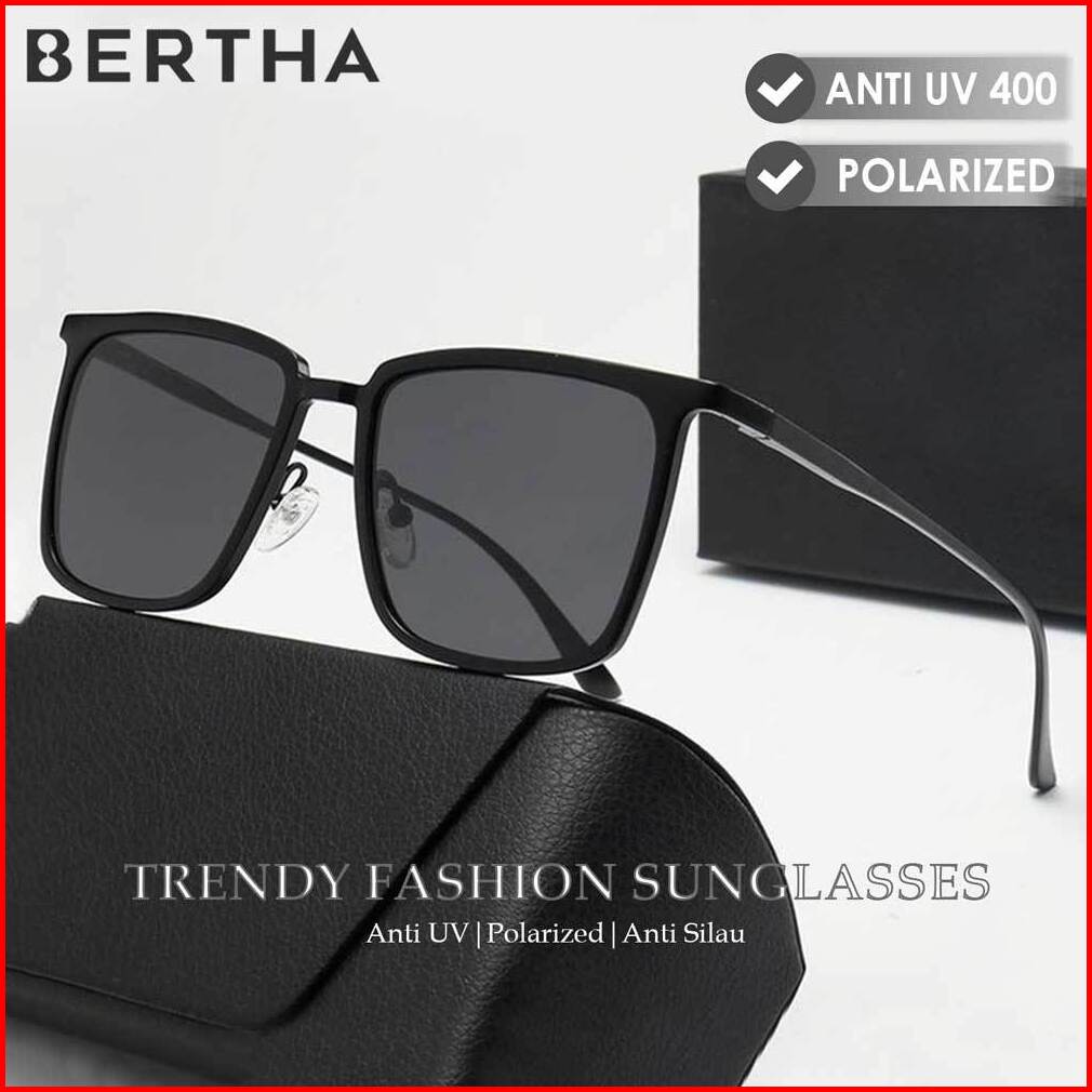 Bertha Kacamata Sunglasses Hitam Anti Uv Polarized Bentuk Kotak Fashion Pria Wanita Fashionable Kekinian 8696