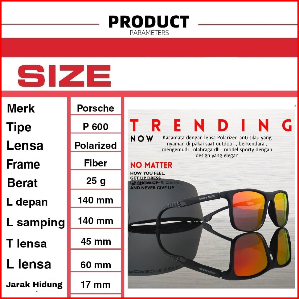 Kacamata Fashion Pria Porsche 600 Polarized Anti Radiasi Frame Fiber Original