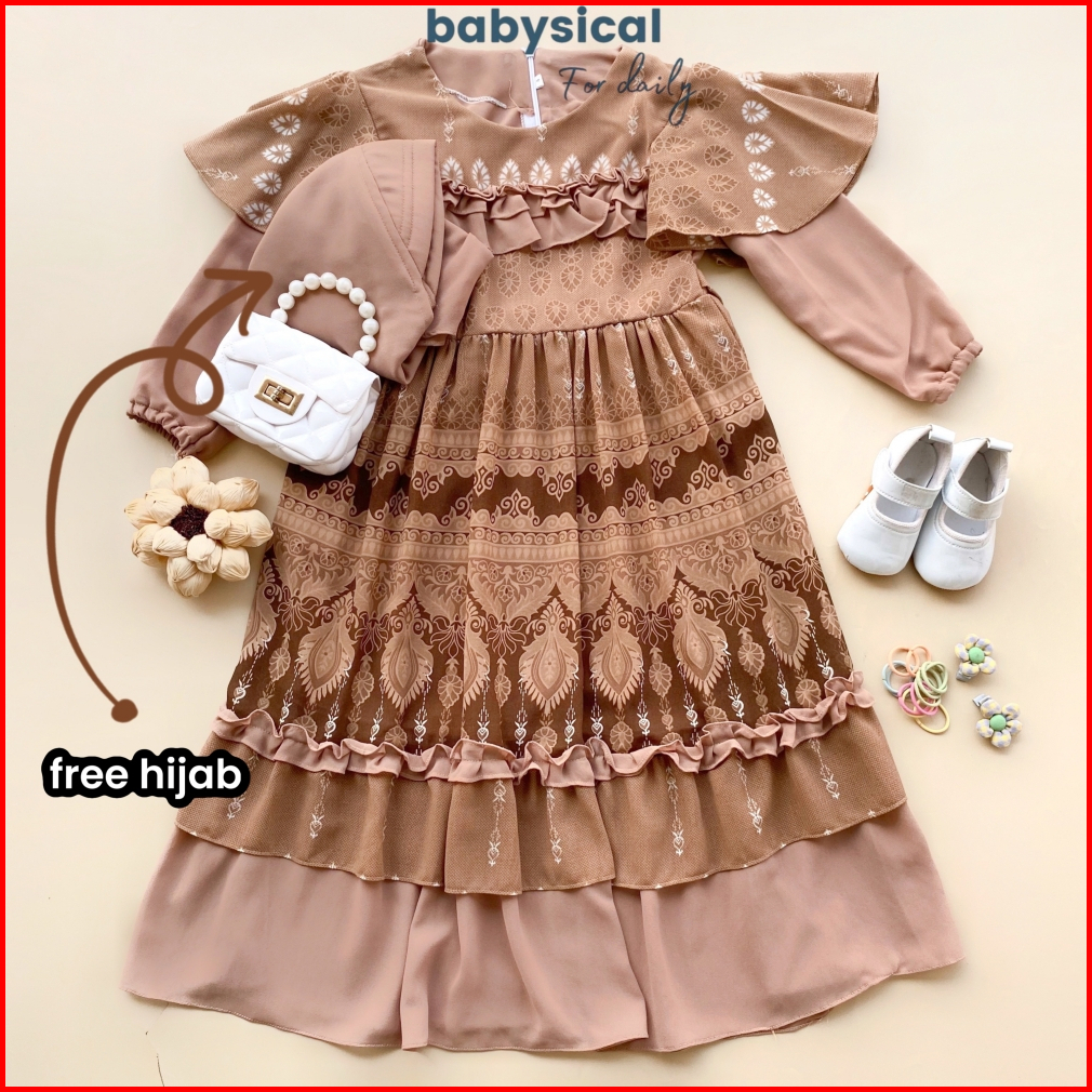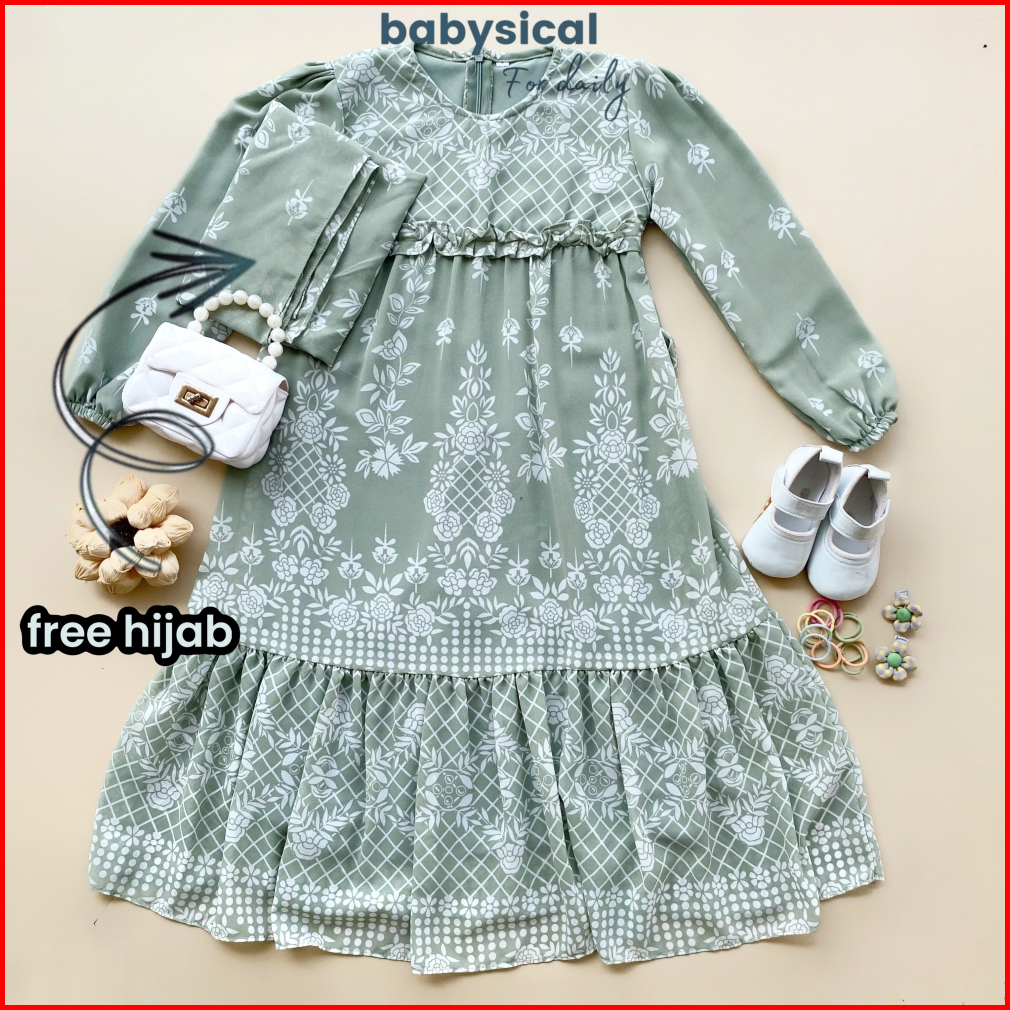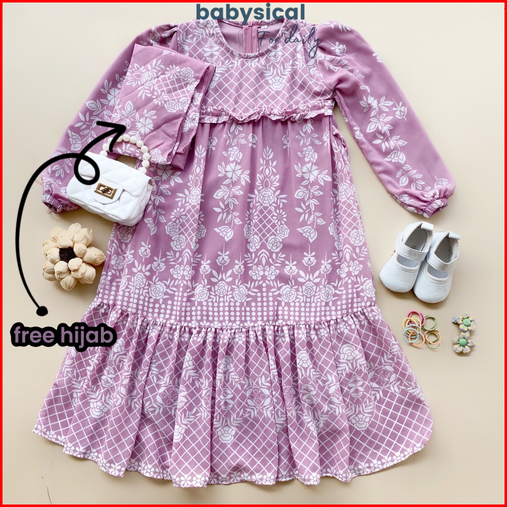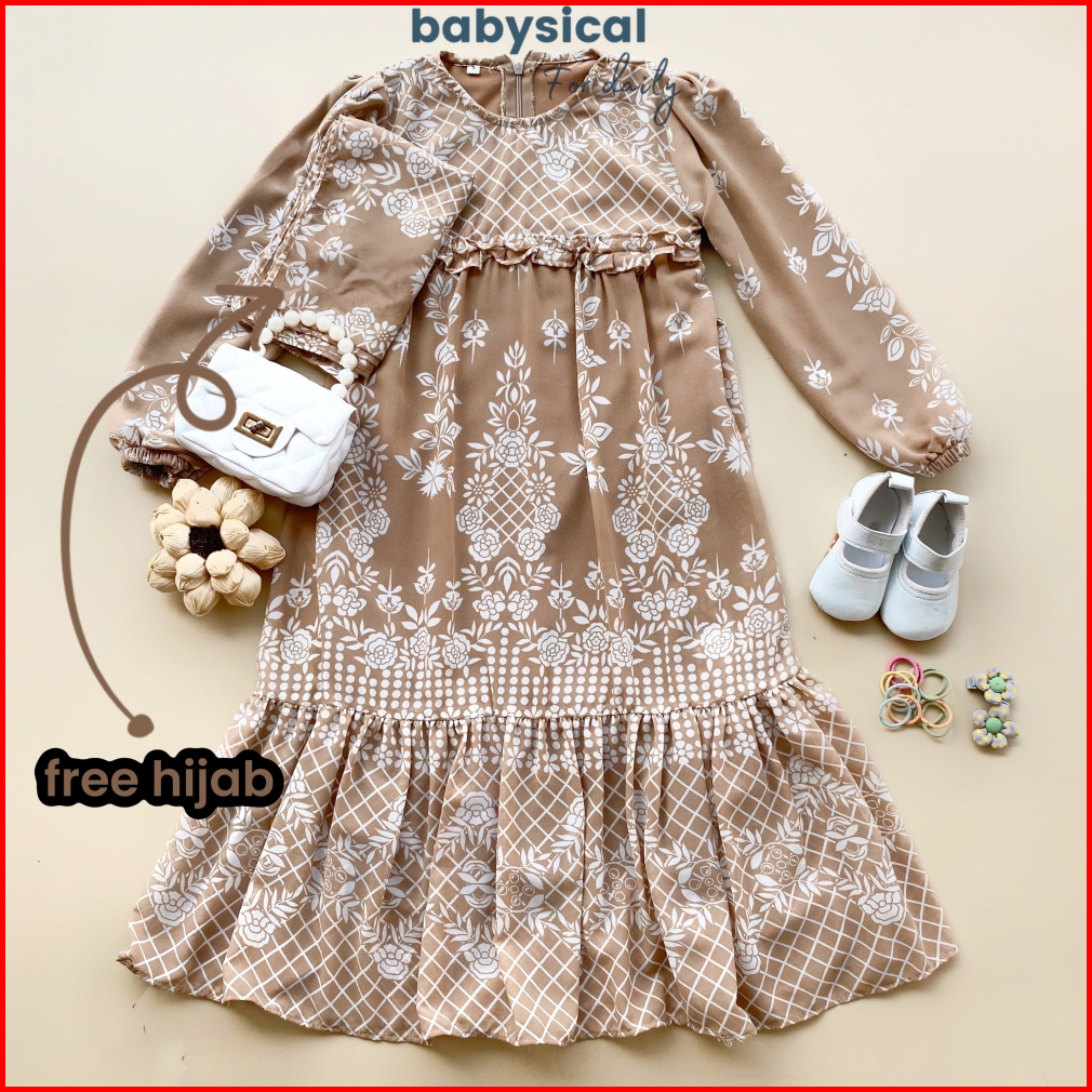 Babysical 3-12 Tahun Amina Gamis Free Hijab Gamis Anak Perempuan Ceruty Dress Panjang Muslim 3 4 5 6 7 8 9 10 11 12 Tahu