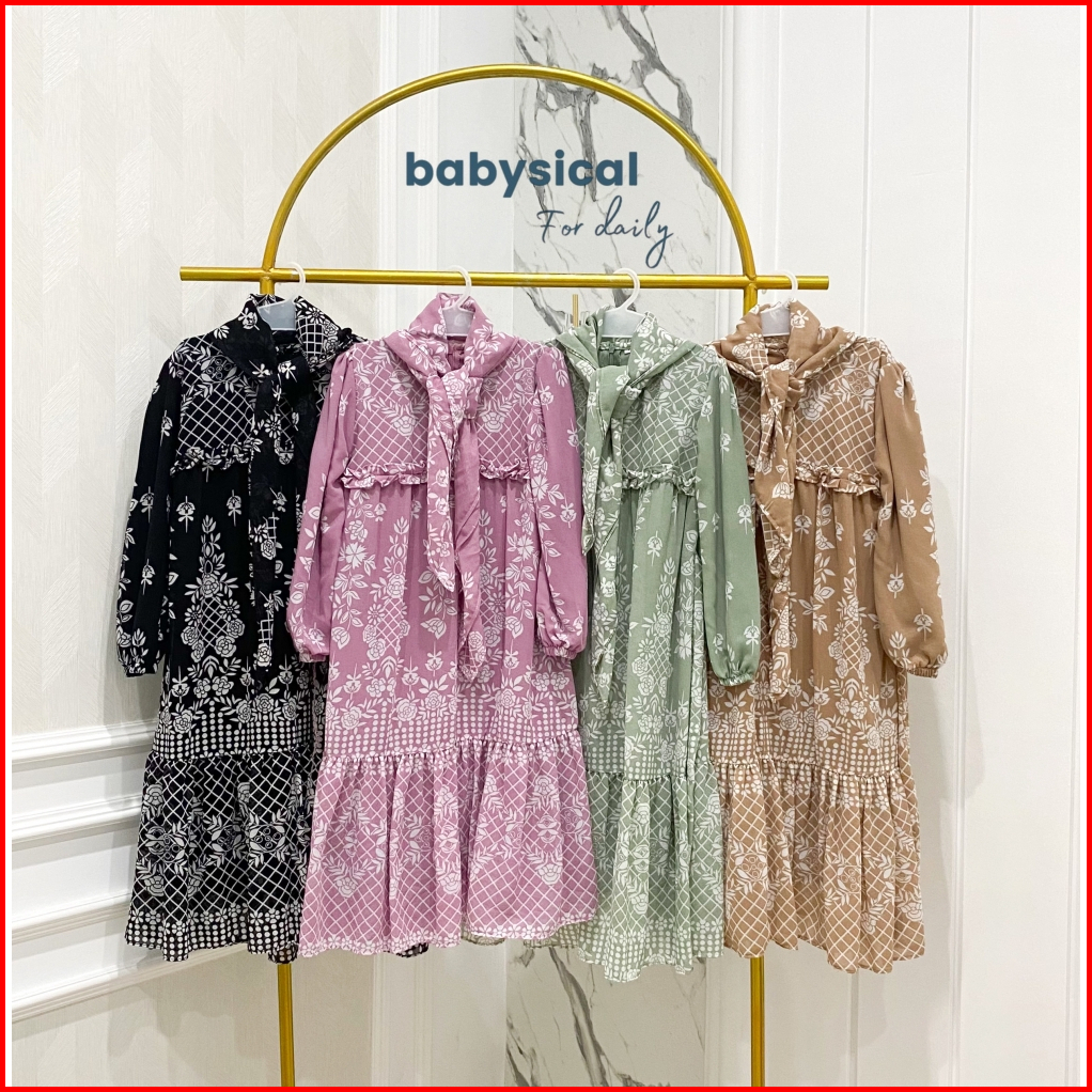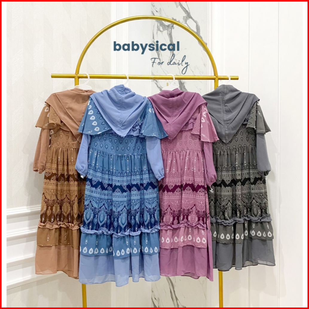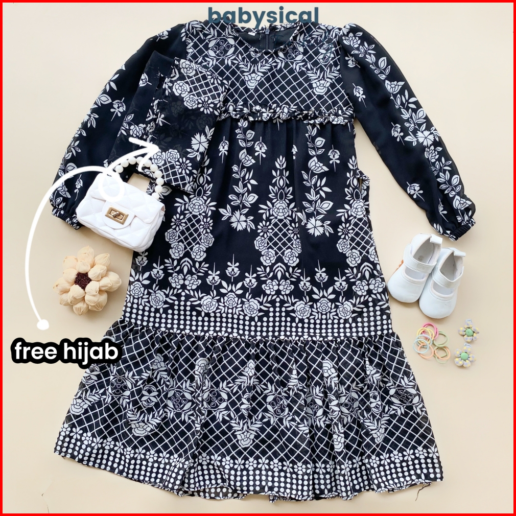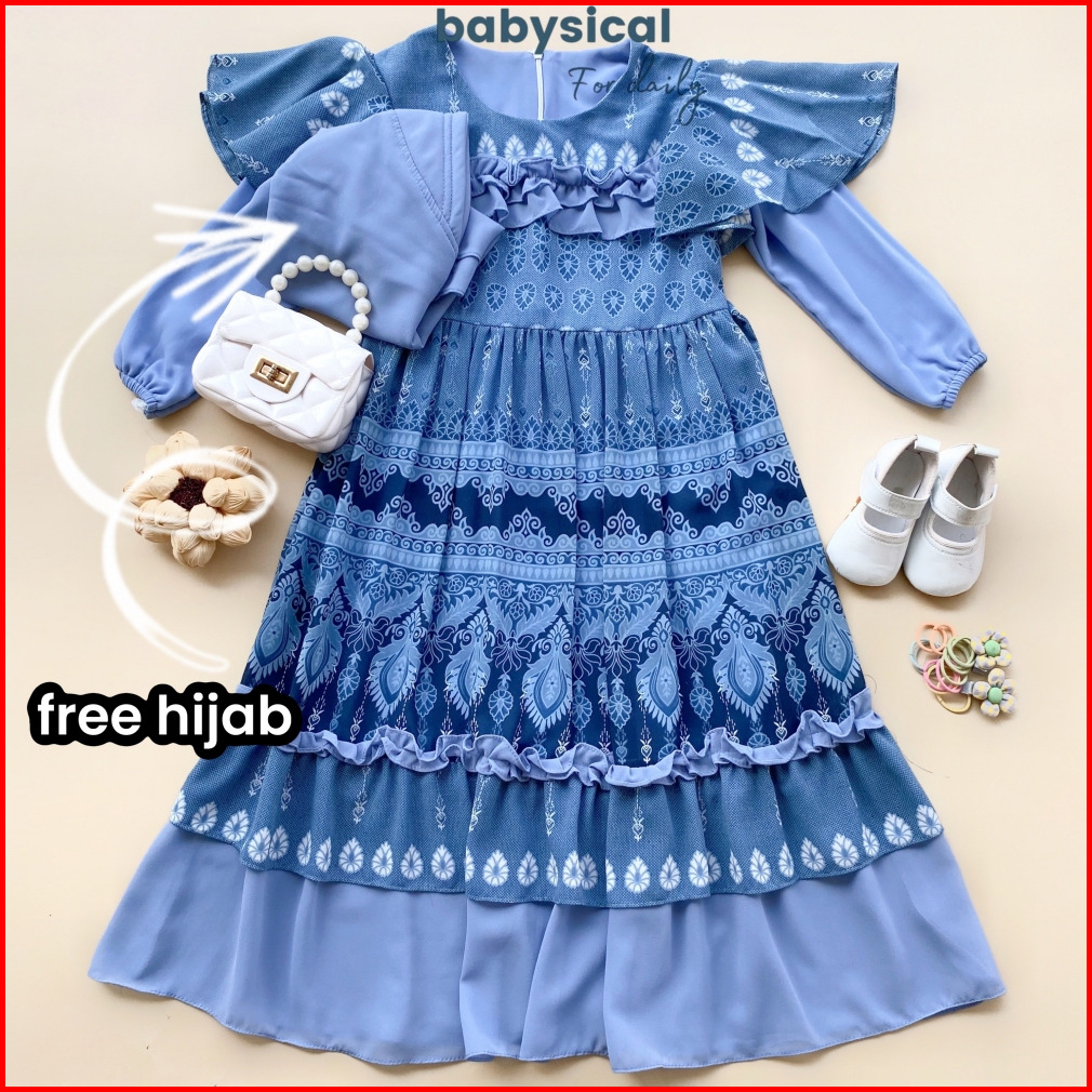 Babysical 3-12 Tahun Amina Gamis Free Hijab Gamis Anak Perempuan Ceruty Dress Panjang Muslim 3 4 5 6 7 8 9 10 11 12 Tahu