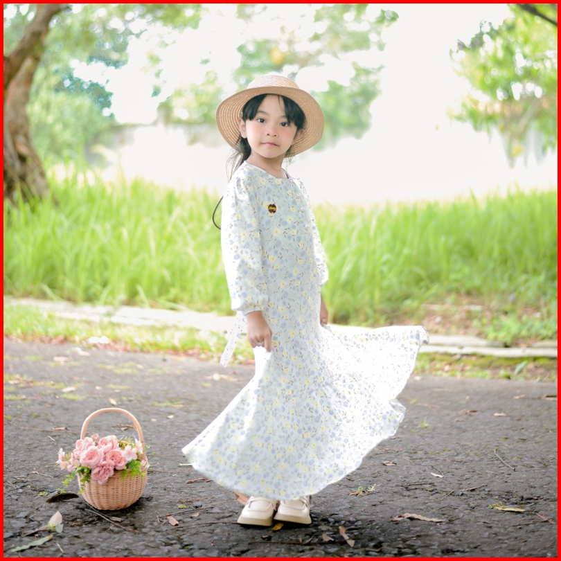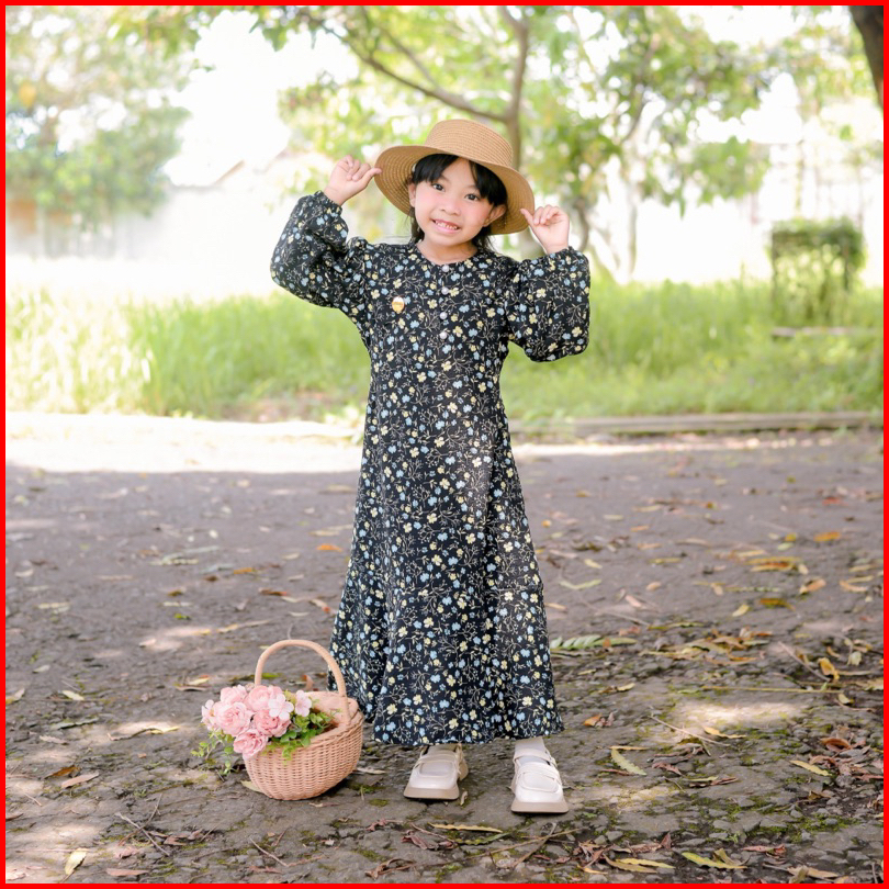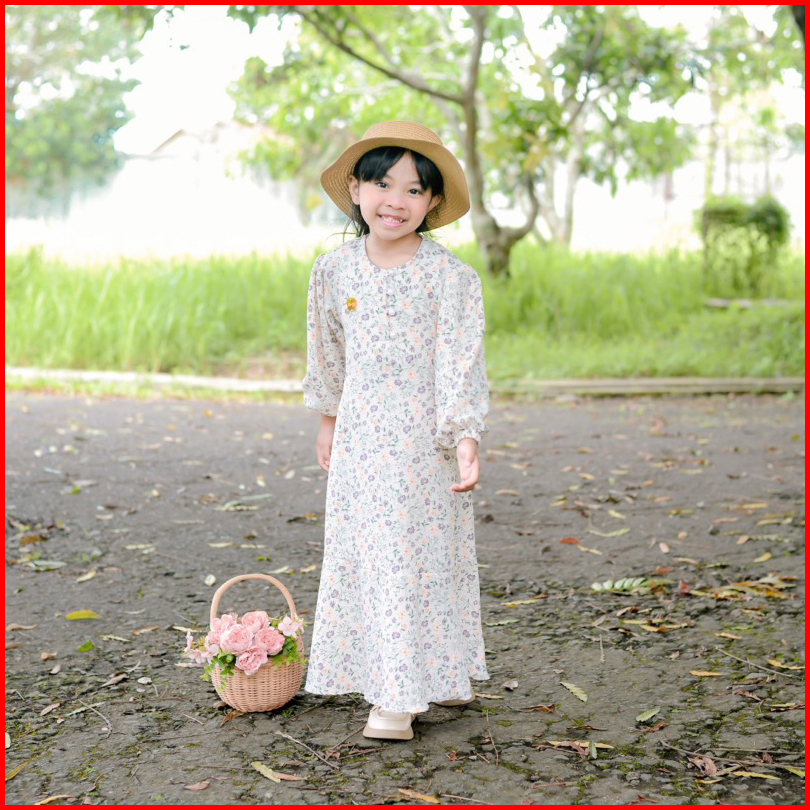 Soojin Korean Dress By Naira Kids Gamis Anak Perempuan Muslim Remaja Motif Bunga Vintage 3-14tahun Bahan Katun Viscose M