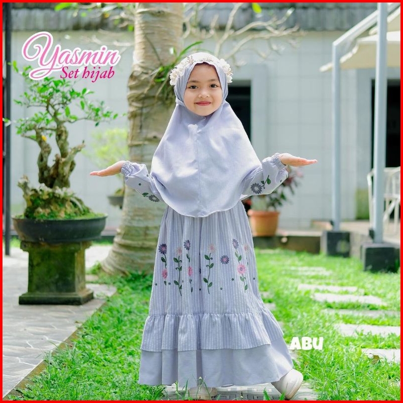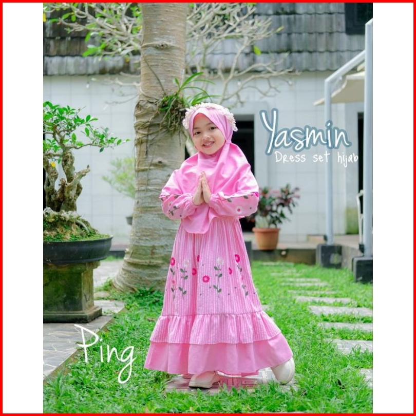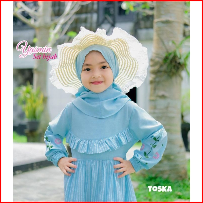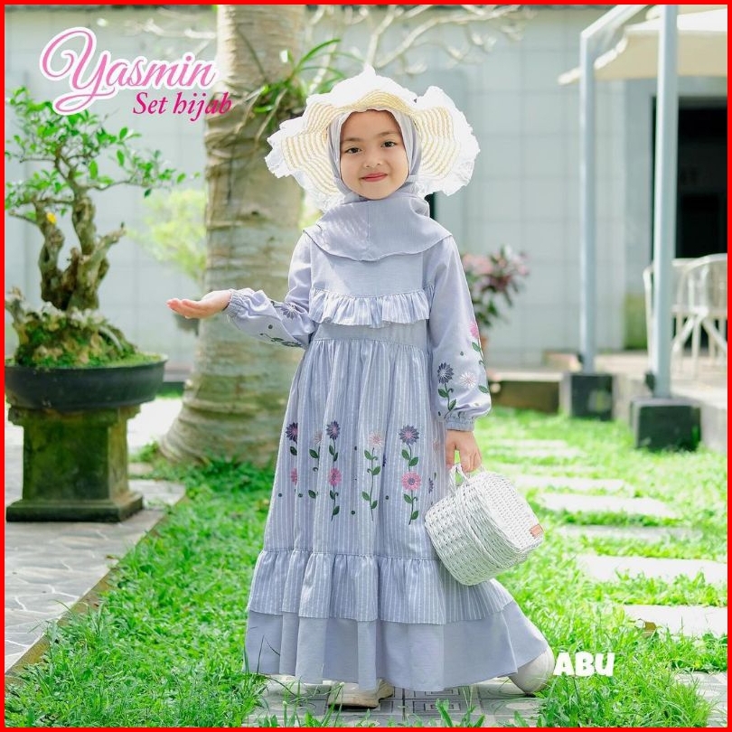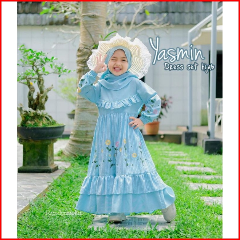 Pittu Kids - Yasmin Dress Set Hijab Bordir Anak Premium Gamis Anak Perempuan 3 Sampai 12 Tahun