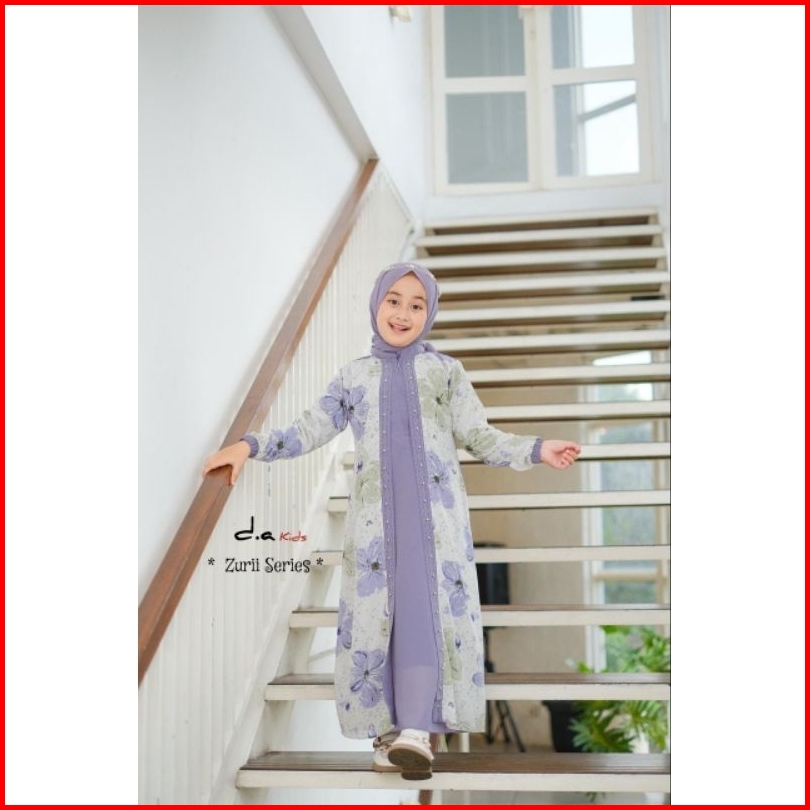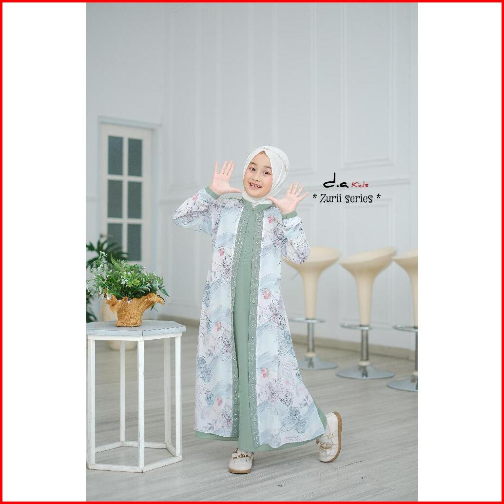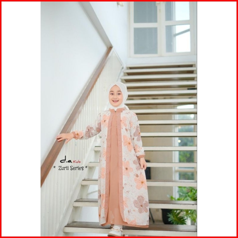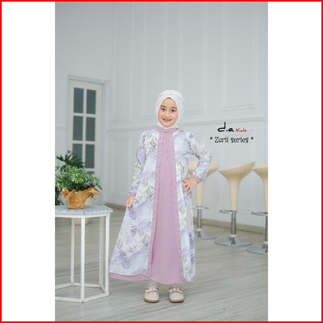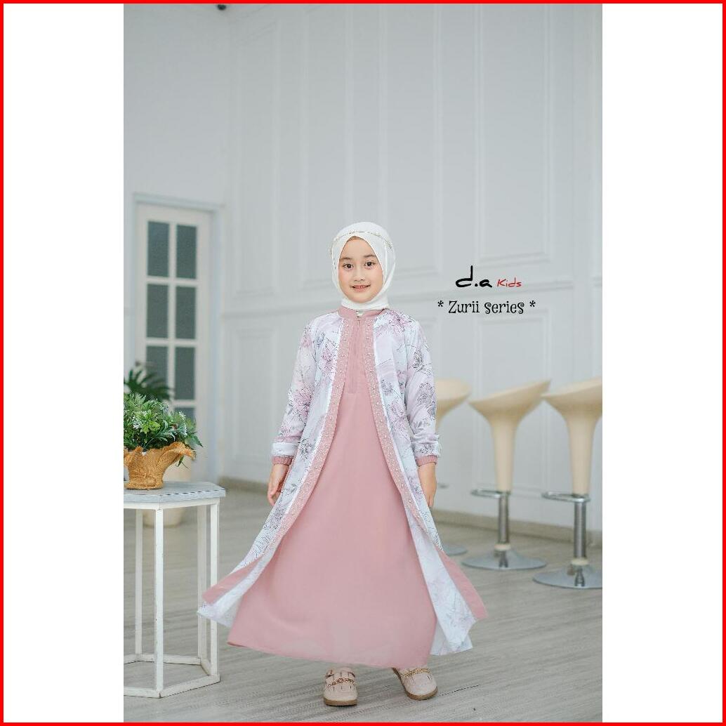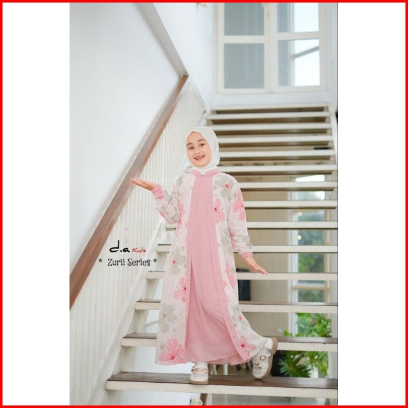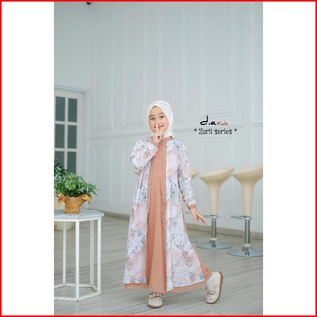 Zaja - Gamis Anak Perempuan Zurii Series Polos Kombinasi Armany Motif Bunga Cantik Busana Muslim Anak-anak Umur 4-12 Tah