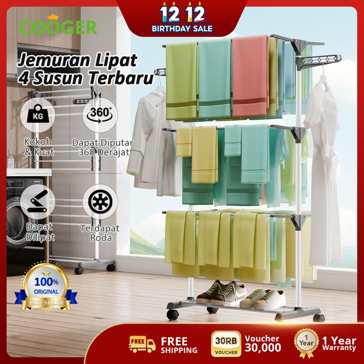 Rak Jemuran Baju Lipat Pakaian Tempat Jemuran Pakaian Jemuran Handuk Menara Stainless Steel Rak Jemuran 4 Susun