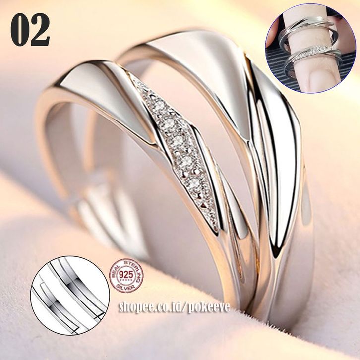 Cin cin Couple Perak 925 Pasangan/Nikah/Tunangan Pria/Wanita Sterling Silver Ring