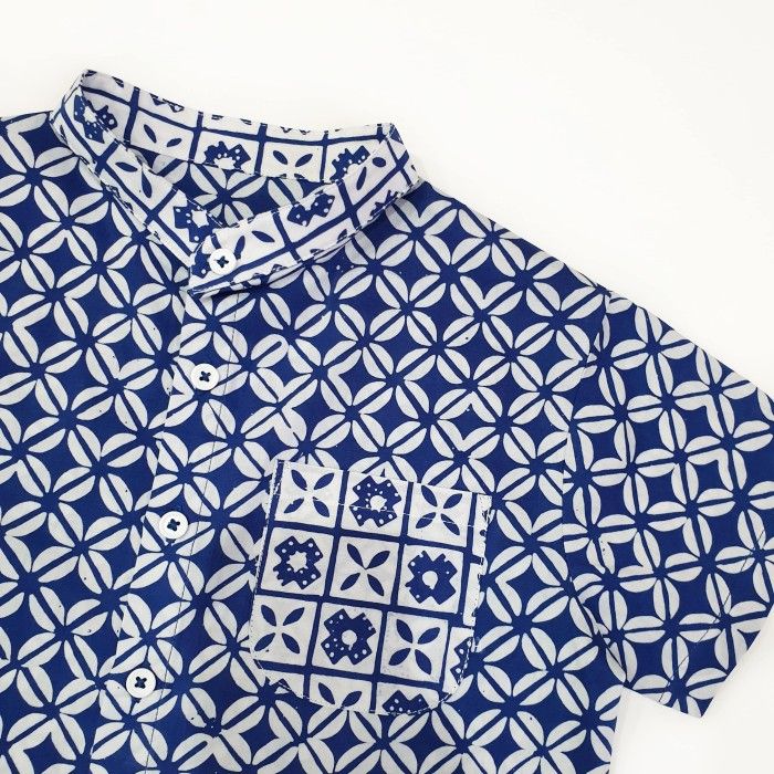 HEYTIMMY - Kemeja Batik Cap Anak Laki Laki Lengan Pendek Katun / Biru Navy Blue / Umur 3 4 5 6 8 10 12 14 tahun - BLUE
