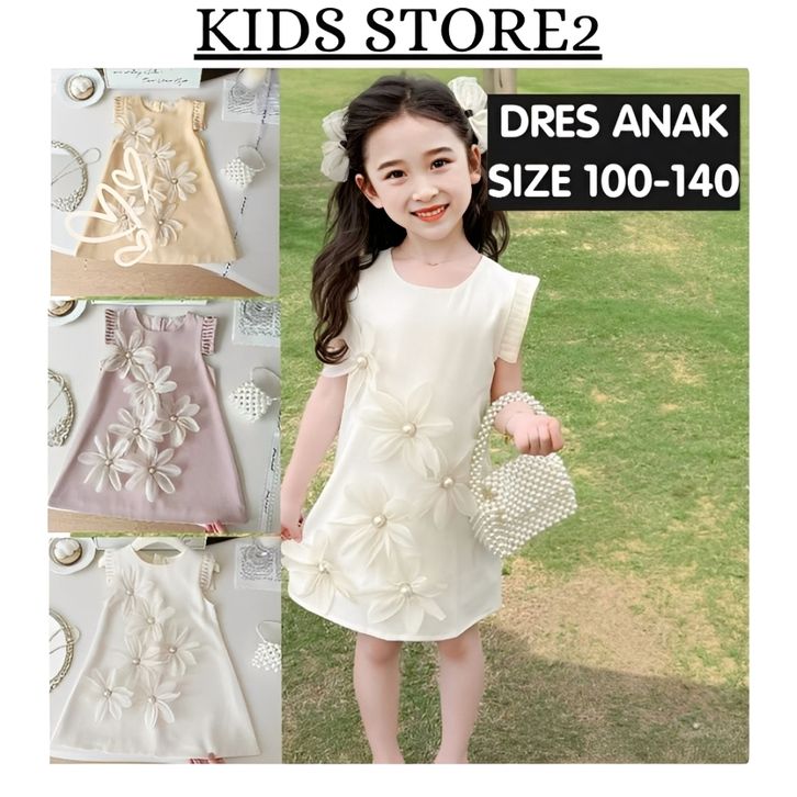 Dress Anak Perempuan BD - 657 Tanpa Lengan Bunga Elegan Timbul Bahan Halus Size 100-150 Best Seller Termurah Kids Store2