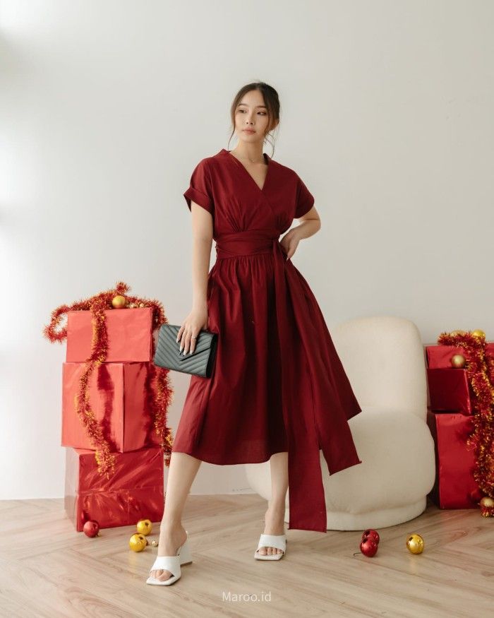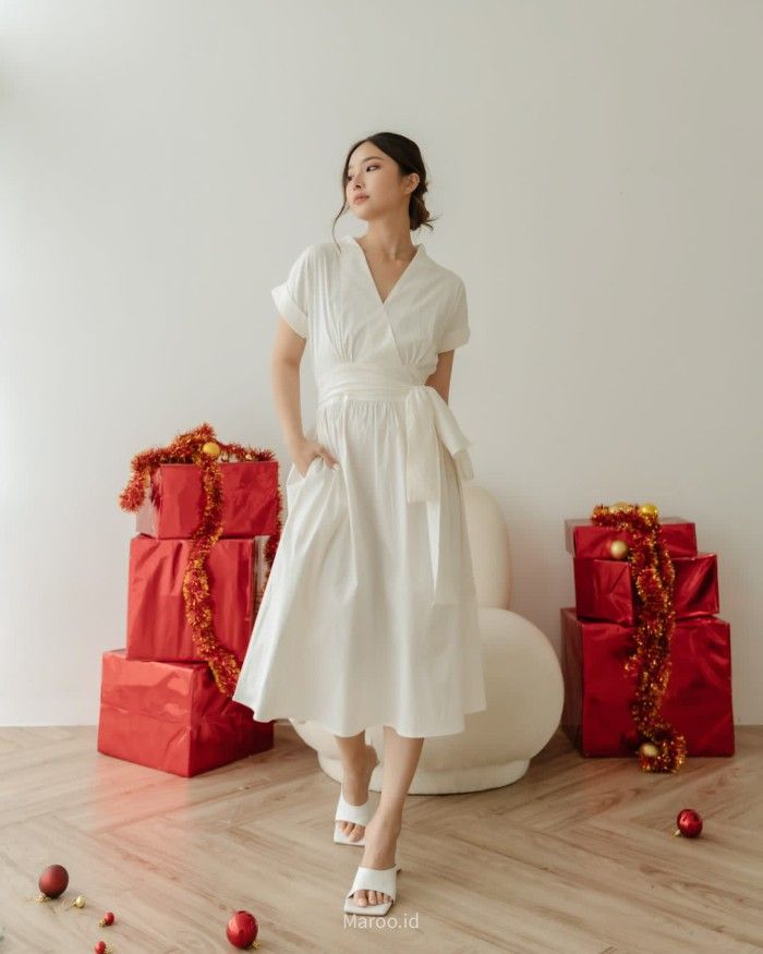 Maroo - Rei Dress/dress natal/dress imlek/dress putih/dress korea