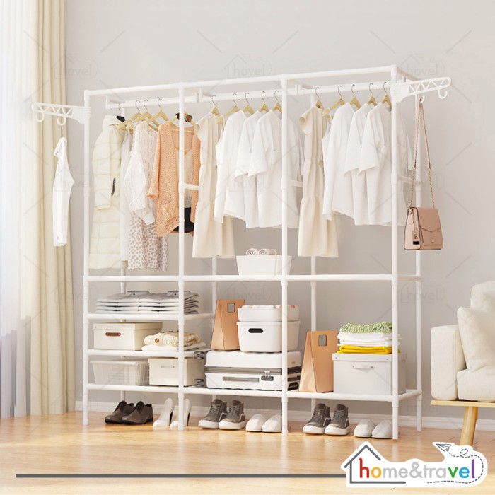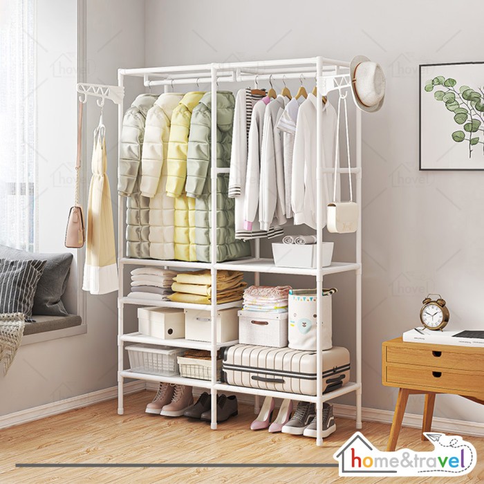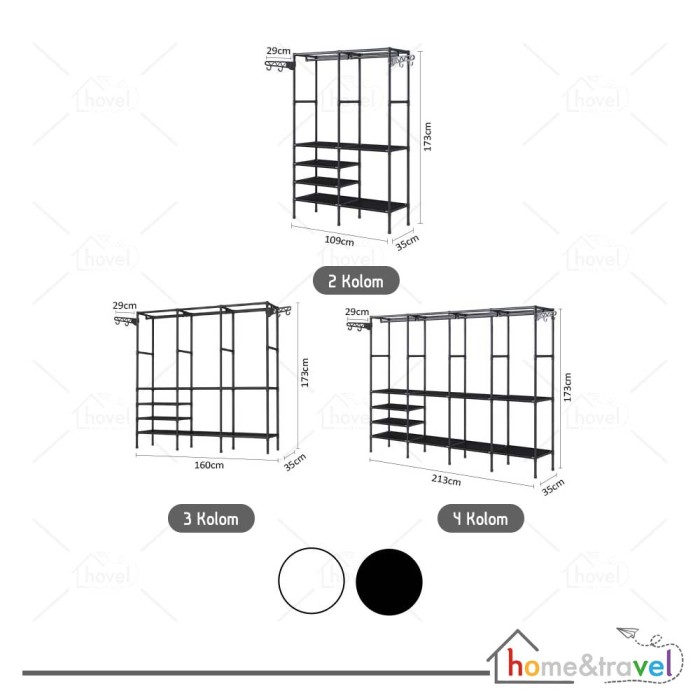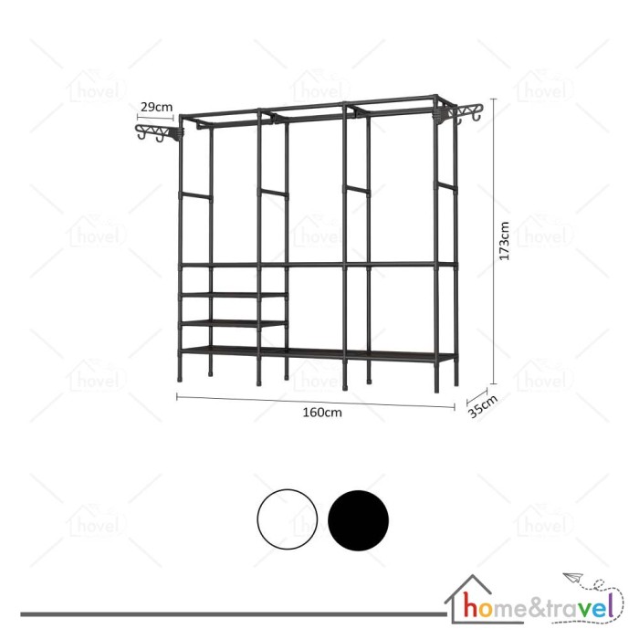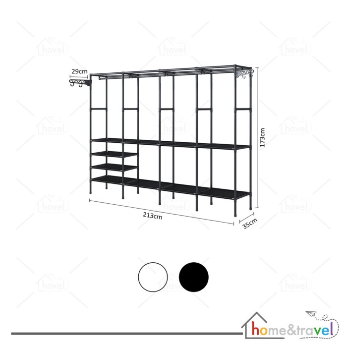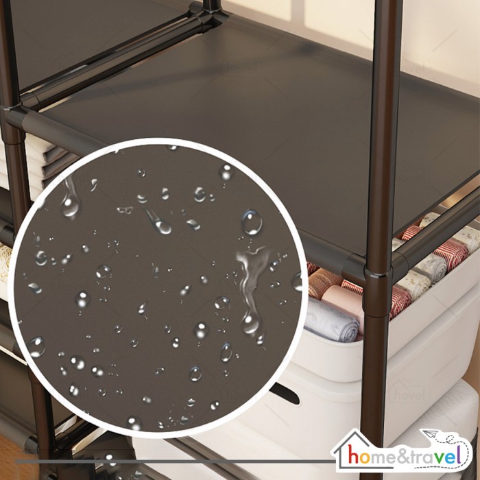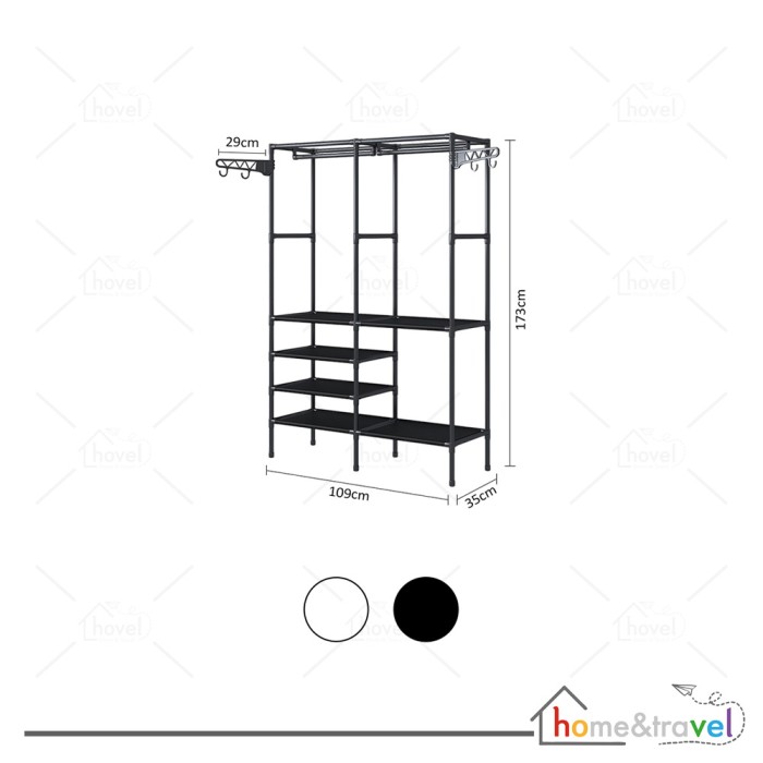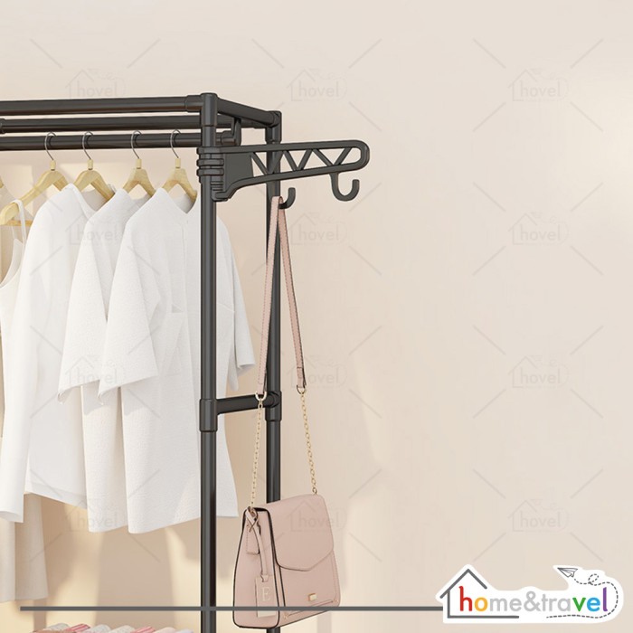 LEMARI PAKAIAN PORTABLE RAK BAJU SUSUN ALMARI WARDROBE STAND HANGER JUMBO MULTIFUNGSI - 2 KOLOM, BLACK