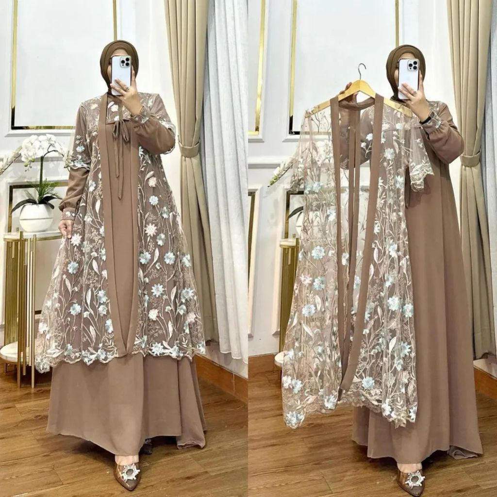 [SALE SPECIAL] Gamis Tile Denim Laksmi Dress Kondangan Inner + Outer Brukat Tille Garden Gamis Outer Lepas Belt Apk