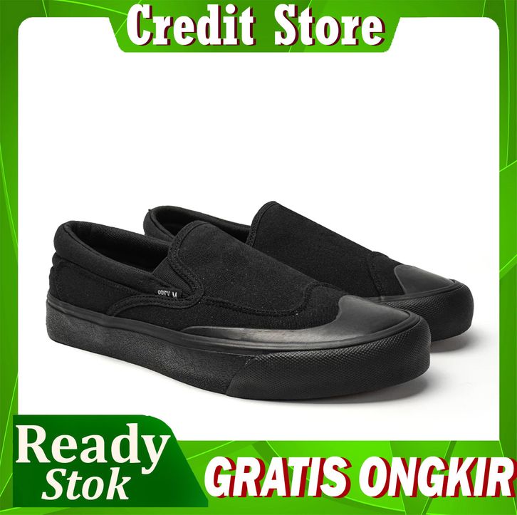 CREDIT STORE Brick Mansions - Slip On Olimpus Full Black Sepatu Casual Pria Wanita
