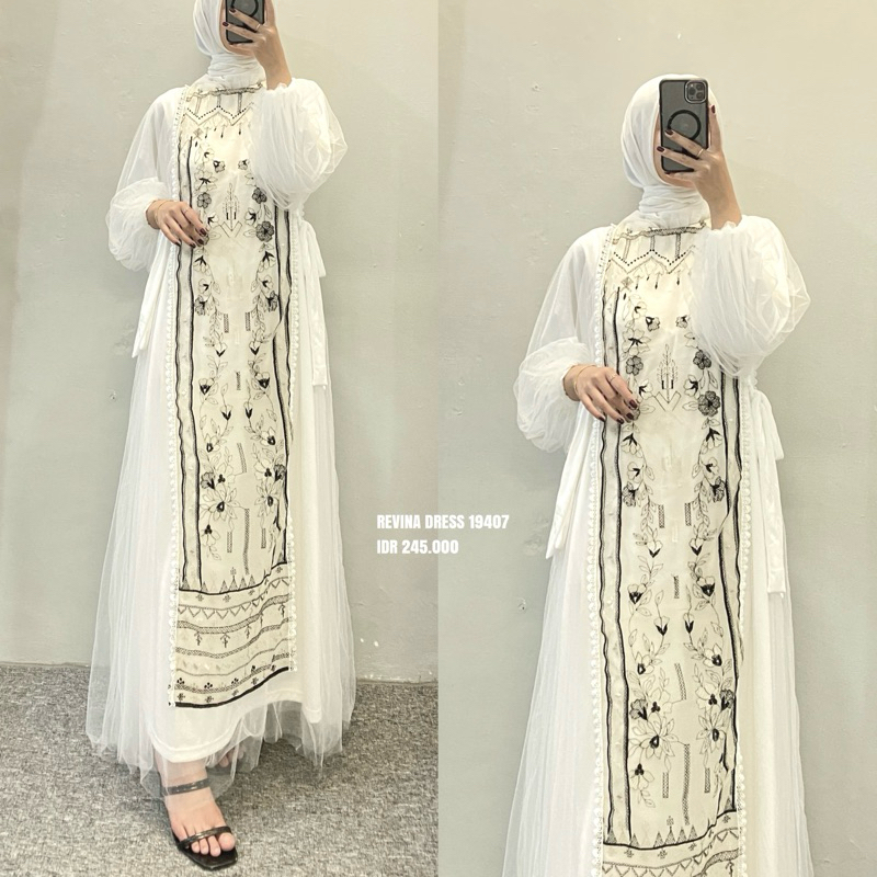( RAMADHAN SALE ) Dress / Gamis kondangan Bahan Brukat Tile Bunga Bordir Gamis putih Kasual Kondangan Wisuda Kekinian