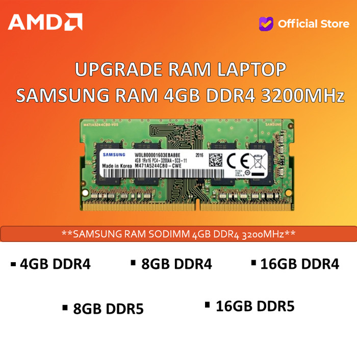 UPGRADE RAM 4GB/8GB/16GB KHUSUS UNTUK PEMBELIAN LAPTOP DITOKO KAMI - 4GB DDR4