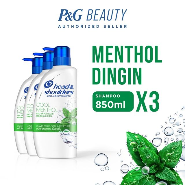 Head & Shoulders Sampo Anti Ketombe Cool Menthol Perawatan Rambut 850Ml X3