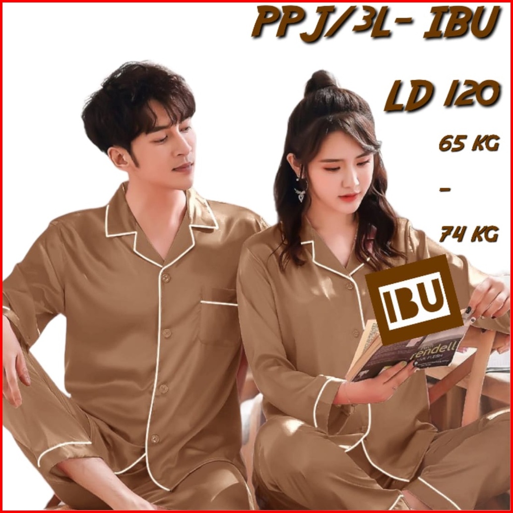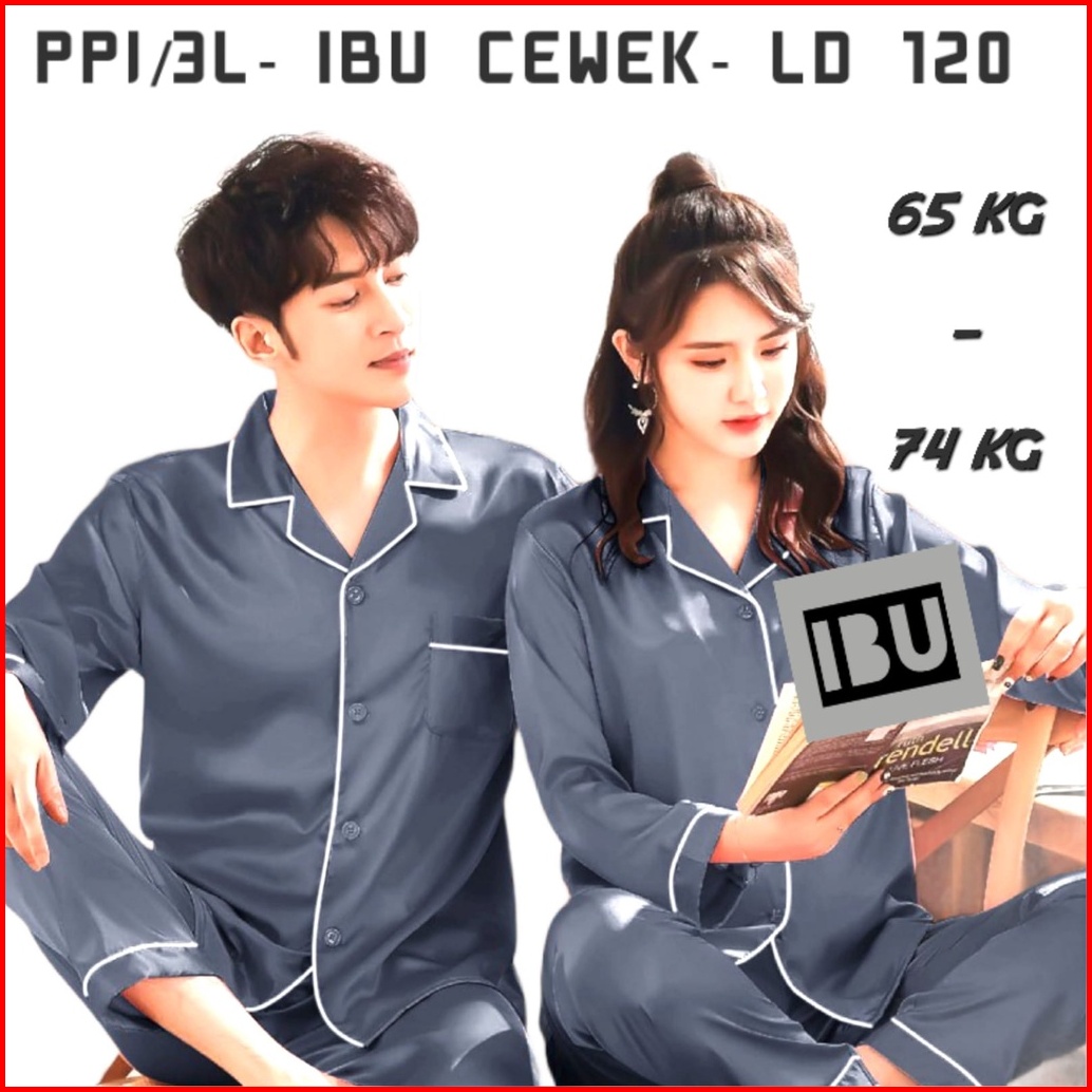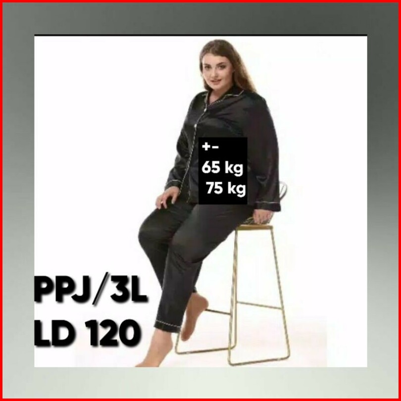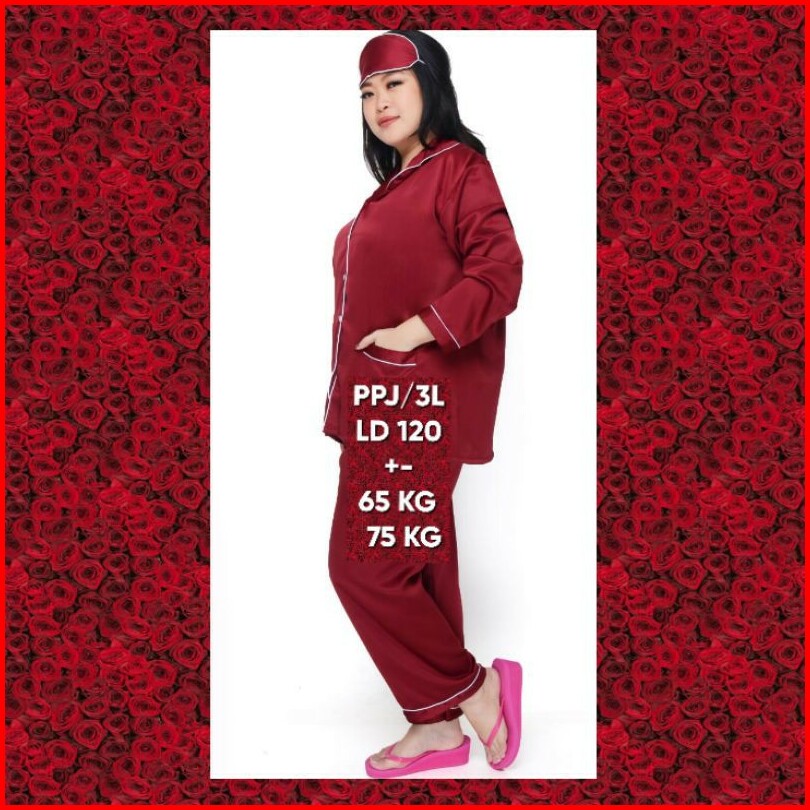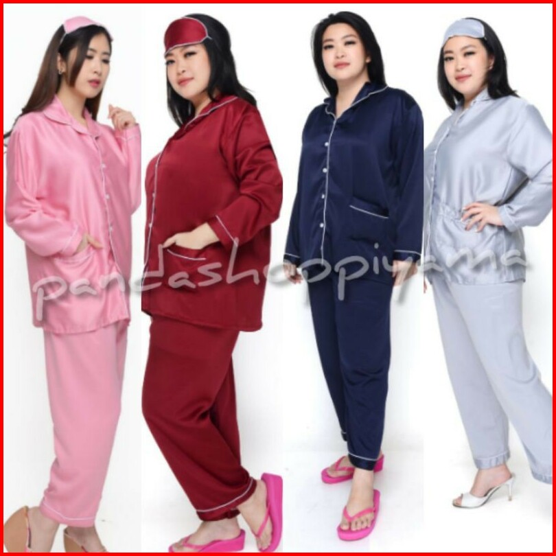 Baju Tidur Jumbo Celana Lengan Panjang Set Piyama Big Size Ld120 Satin Polos Setelan Piama Wanita