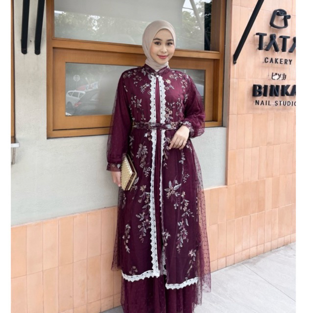 ( RAMADHAN SALE ) Fatunhijabs - Vanya Dress Brukat - inner + outer - Dress Lebaran