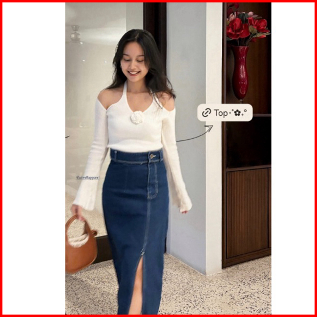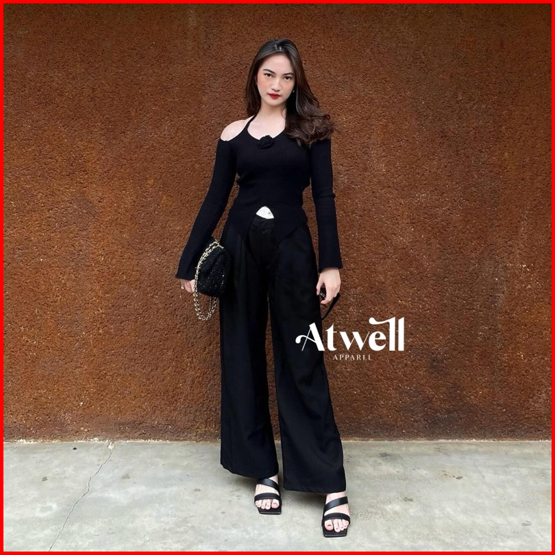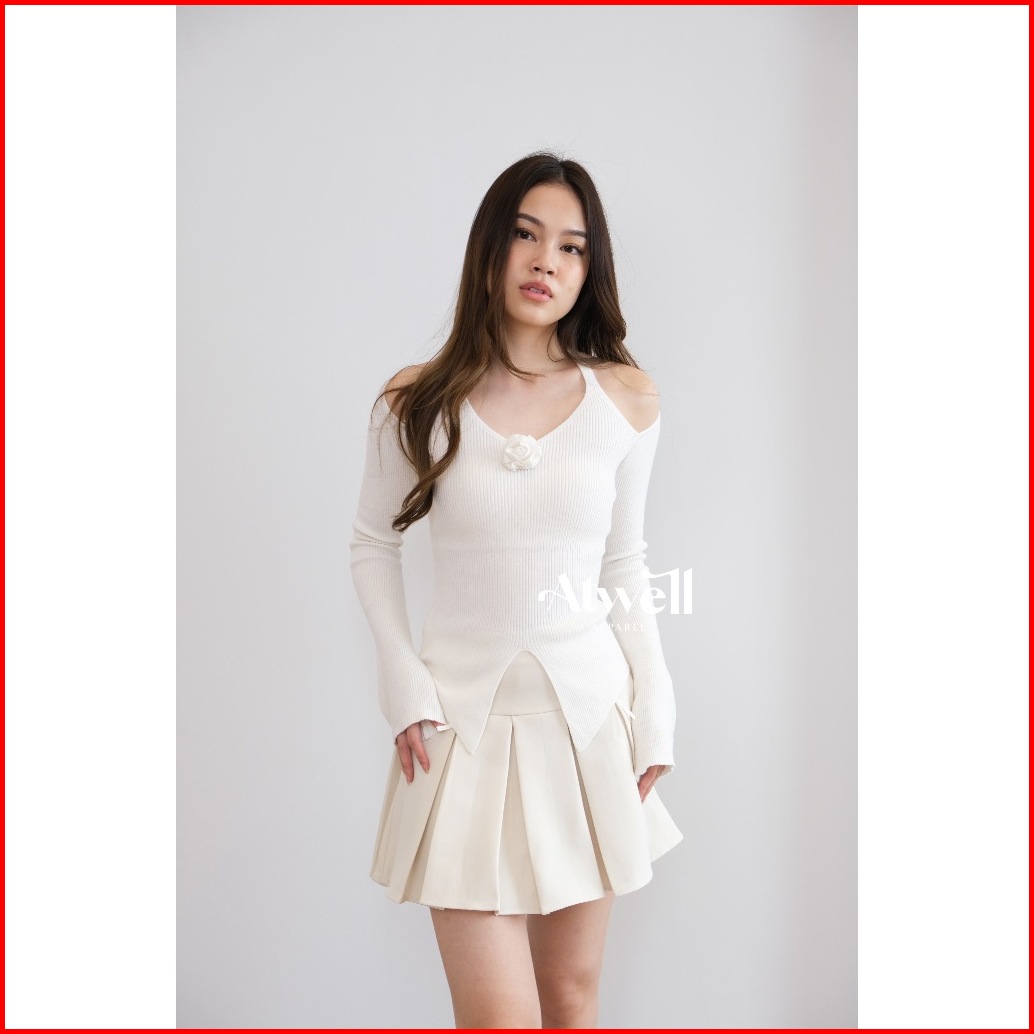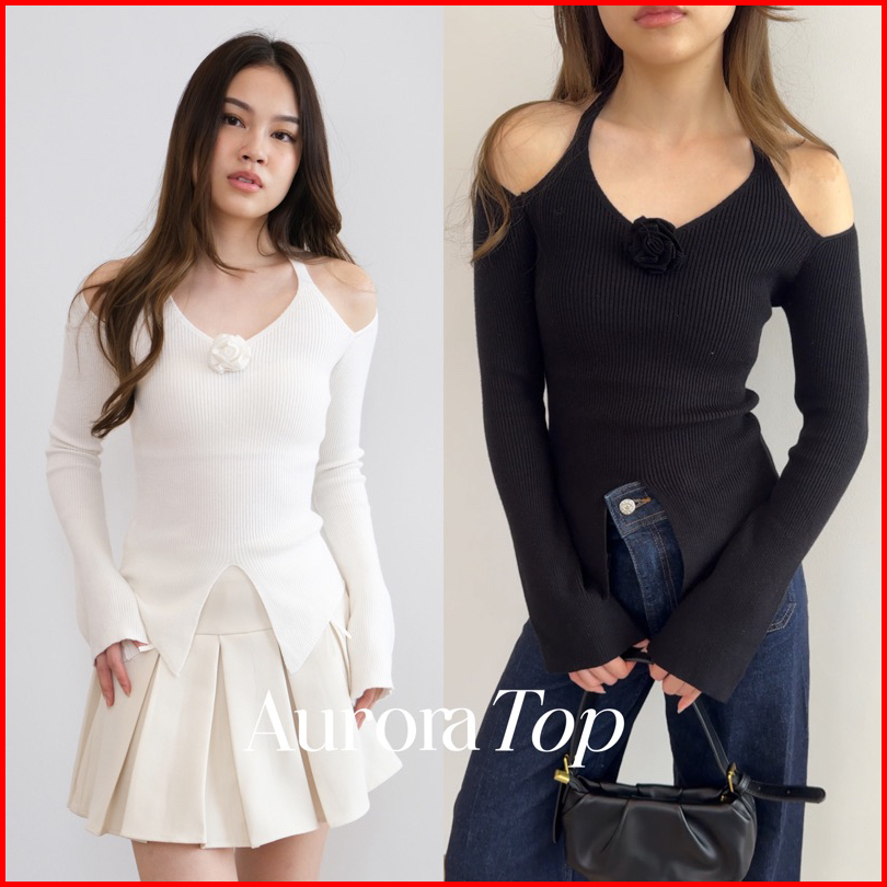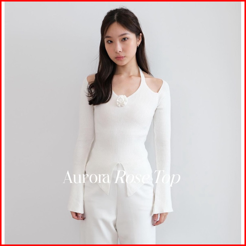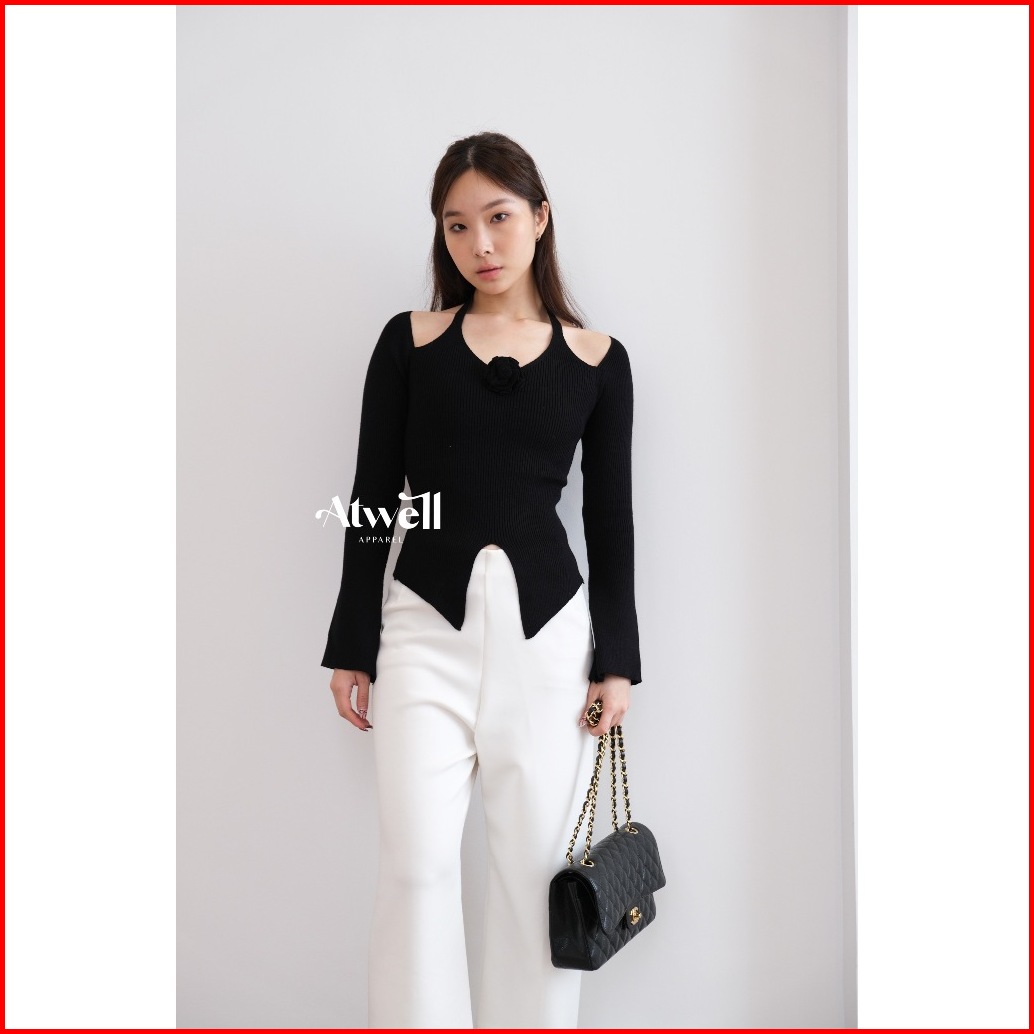Aurora Knit Rose Halterneck Long Sleeves Top