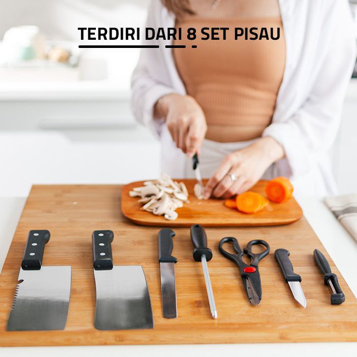 Pisau Dapur Set Isi 8 Psc Kitchen Knife Set Stainless Steel Tidak Mudah Berkarat Gagang Anti Slip Nyaman Digunakan