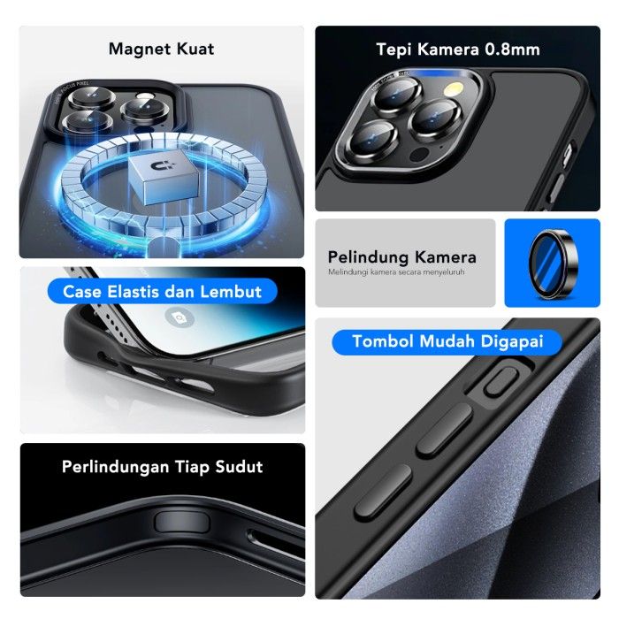 AMINO Magnetic Matte Bening Case Untuk Iphone 15 15 Pro Max 15 Plus Casing Pelindung Kamera - iPhone 15ProMax, Magnetic