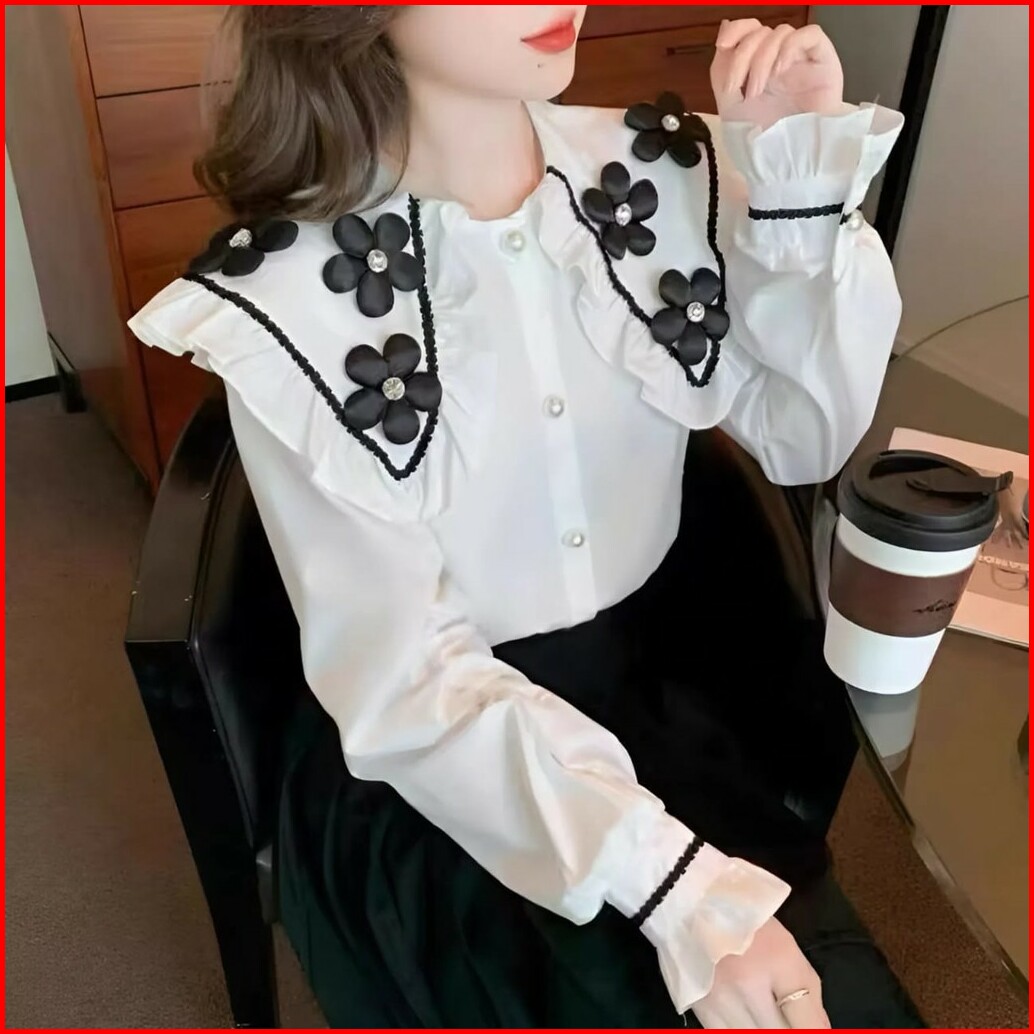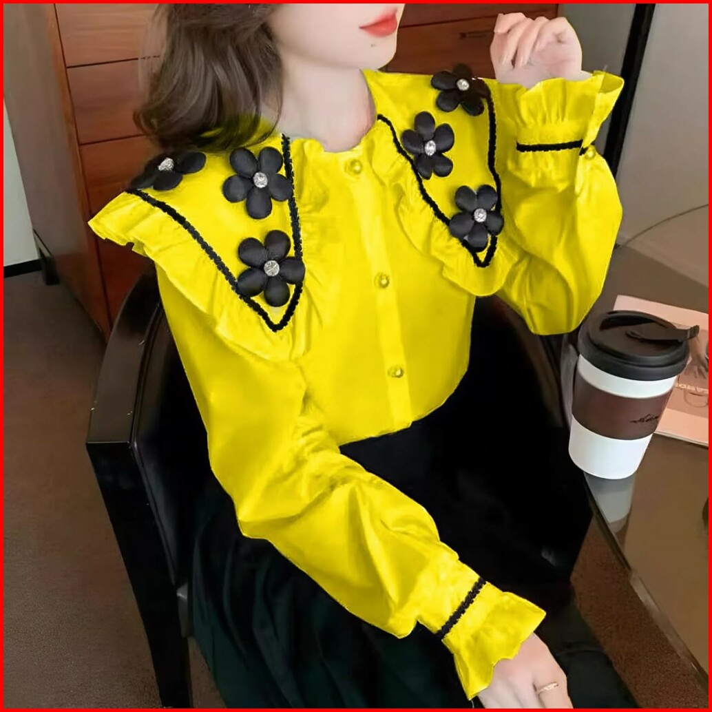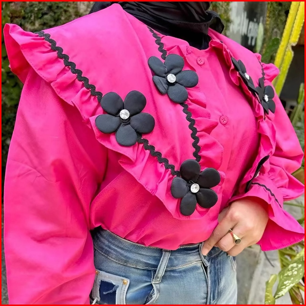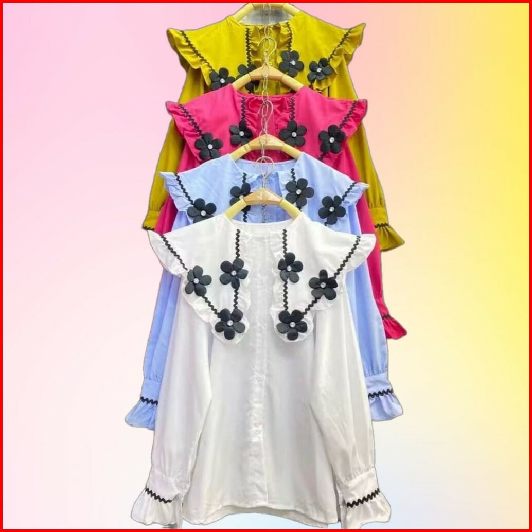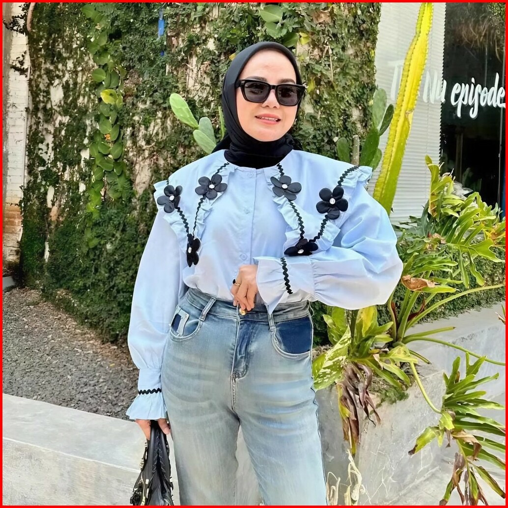 Vallina Outfit - Alma Top Kemeja Bunga Timbul Blouse Atasan Remaja Renda Import Korean Style