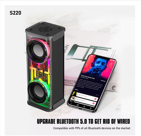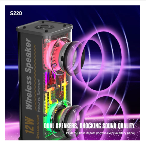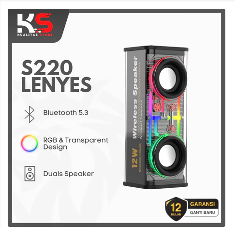 SPEAKER BLUETOOTH TRANSPARAN RGB TWS V5.3 12WATT HIFI STEREO S220