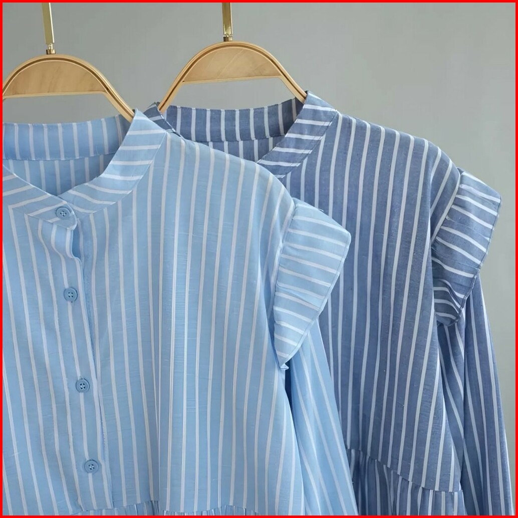 Vallina Outfit - Hanako Top Atasan Wanita Muslim Matt Katun Salur Premium Ootd Korean Style